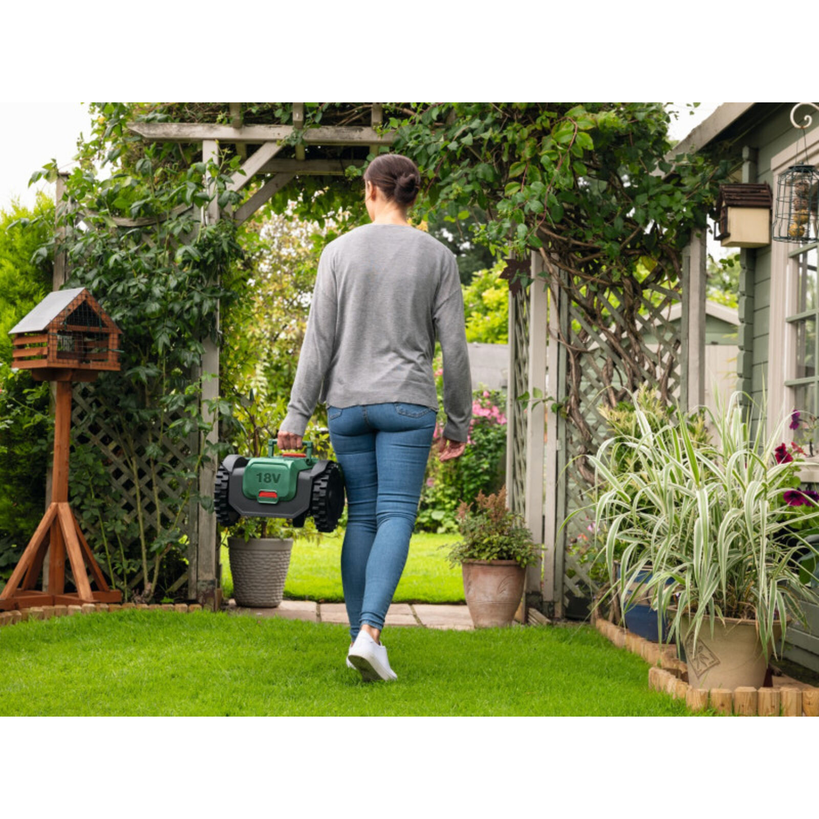 Gyorsindítású fűnyírás akár 100 m2-igEgyszerű, 3 gombnyomással történő beállítás, a tárolástól a fűnyírásig, másodpercek alattA SmartVision rendszer lehetővé teszi a vezeték és infrastruktúra nélküli telepítést.Félautomata működés, több gyepfelület és akár 100 m2-es zóna nyírásához3 pengés vágótárcsa 16 cm-es vágási szélességgelÁllítható vágásmagasság 20 és 60 mm között a személyre szabott eredmény érdekébenSpotMow funkció a fűfoltok nélküli, egyenletes gyep érdekébenPOWER FOR ALL ALLIANCE: 1 akkumulátor, 10+ márka, 150+ termék Technikai adatokAkkufeszültség18,0 VAjánlott gyepfelület max.100 m2Cserélhető akkuIgenVágásszélesség16 cmVágórendszer3 forgókésVágásmagasság20 – 60 mmMax. emelkedés35 %A szerszám méretei (h x sz x m)429 x 348 x 226 mm Szállítva: 1 x PBA 18V 4,0Ah akku, 1 x pótkés, AL 18V-44 töltő, Kartondoboz