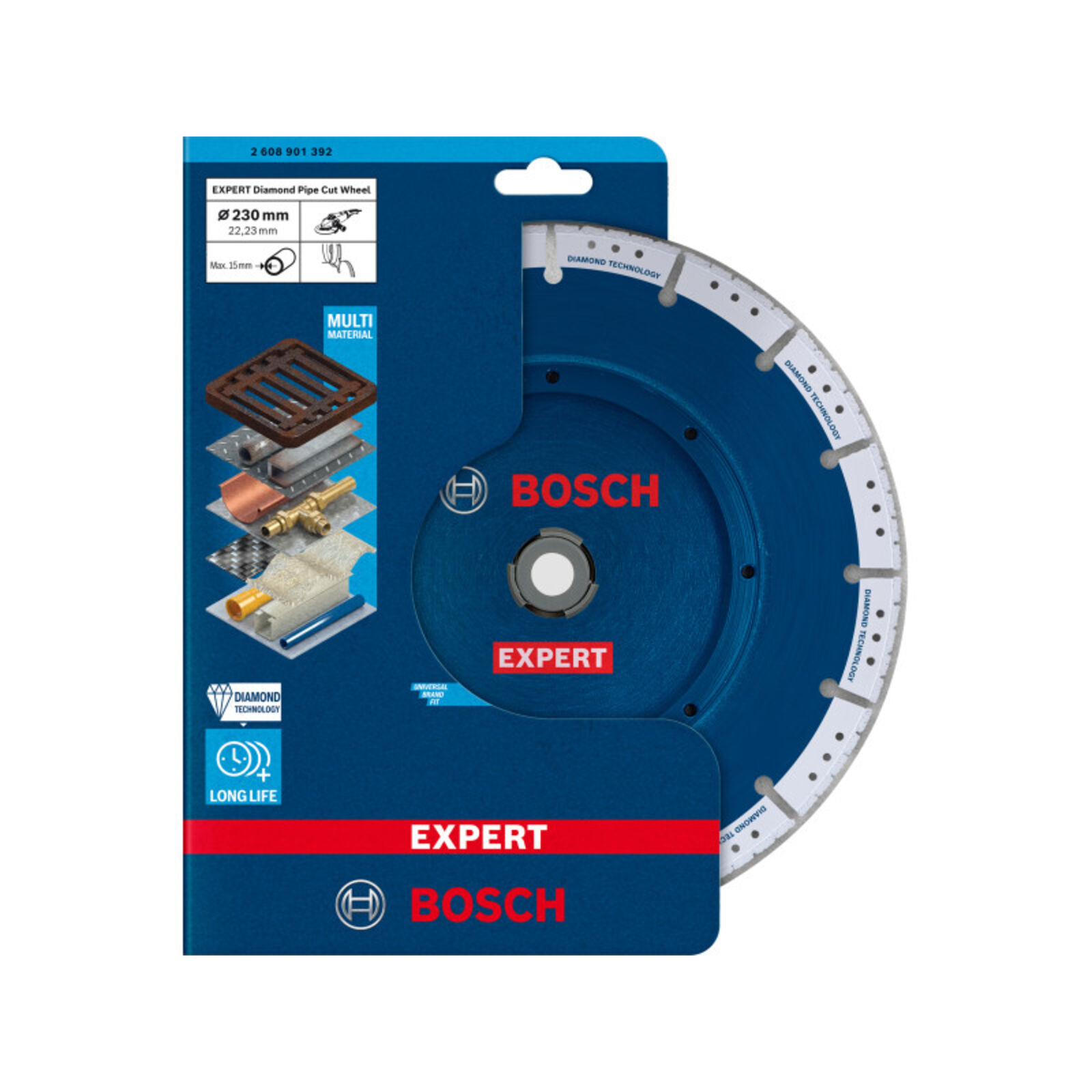 Vágás közben leélezi a csővéget, és hosszabb élettartamú, mint a hagyományos vágótárcsák - A csövek vágásának és leélezésének számos módja van, de a legtöbb időigényes, és még speciális felszerelést is igényel: az EXPERT Diamond Pipe Cut Wheel tökéletes, leélezett vágást tesz lehetővé sarokcsiszolóval – ráadásul ez egy rendkívül tartós kiegészítő.Az EXPERT Pipe Cut Wheel a Bosch Diamond Technology megoldását alkalmazza, ami acéltesthez rögzített, optimális minőségű gyémántszemcséket jelent.Ez a szuperkemény él nagyon tartós, és sokféle anyagú csövet képes könnyedén elvágni, az öntöttvastól a kemény műanyagig.Sőt, a kiegészítő leélező kerék automatikusan leélezi a csöveket vágás közben, így idő takarítható meg, és egyszerű módon biztosított a mélységszabályozás is.Tökéletes kiegészítő a csővágáshoz, nem törik el, ha leesik, nem bocsát ki vegyszerszagot vagy extra port a vágás során, emellett állandó vágási mélységet és sebességet tart fenn a hosszú élettartama során.22,23 mm-es furattal normál rögzítőanyás sarokcsiszolókhoz.