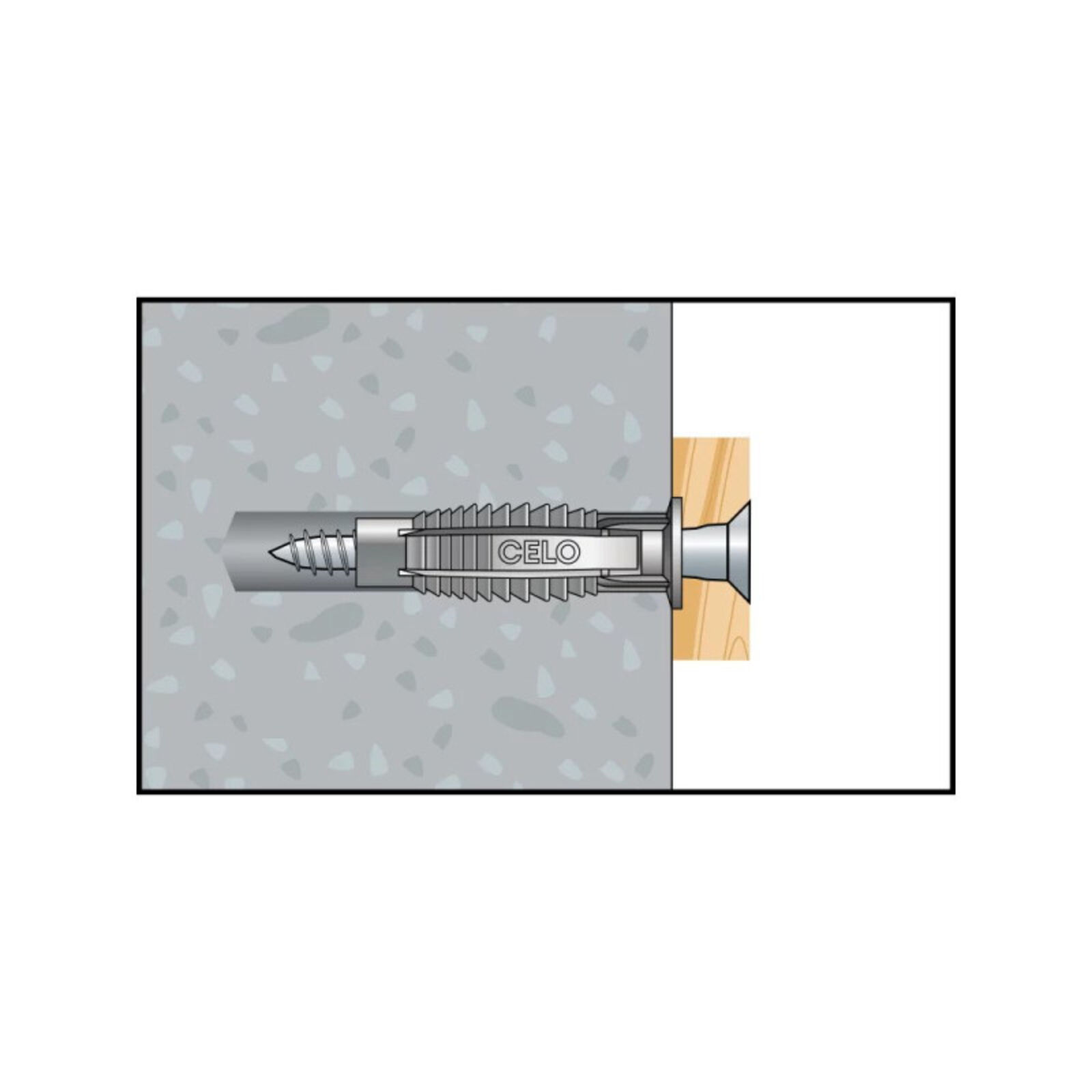 A népszerű CELO FX dübel négyirányú tágulása nagyon magas terhelhetőségi értékeket biztosít a különféle építőanyagokban. Bordázata megakadályozza az elforgást a furatban. A fejrészen levő gallérnak köszönhetően nem csúszik be a furatba. Az FX dübel kiváló minőségű, öregedésálló nylonból készül. Különböző típusú csavarokkal használható, mint például fa-, forgácslap-, önmetsző csavarok stb. -40 °C és +80 °C között hőálló. Az FX dübel széles körű felhasználhatóságot tesz lehetővé.Alkalmazások Lámpák Villanykapcsolók Fali fogas Fali szekrények Postaláda Függöny sín Szaniter rögzítések Korlát TV tartó FestményekTovábbi specifikációkFőbb jellemzők: 4 irányú terpesztés a tökéletes rögzítésért Kompatibilis a különböző típusú csavarokkal, mint például facsavarok, forgácslap csavarok, önmetsző csavarok stb. Recézett oldalának köszönhetően nem forog el a furatban A gallér megakadályozza, hogy a dübel a furatba csússzon Kiváló minőségű és öregedésálló nylon Hőállóság: -40°C-tól +80 °C-igAlapanyagok: GipszkartonTechnikai adatok Anyag Nylon Furat átmérő (mm) 6 Furat mélység (mm) 40 Rögzítési mélység (mm) 30 Dübel hossz (mm) 30 Csavar átmérő (mm) 3.5-5