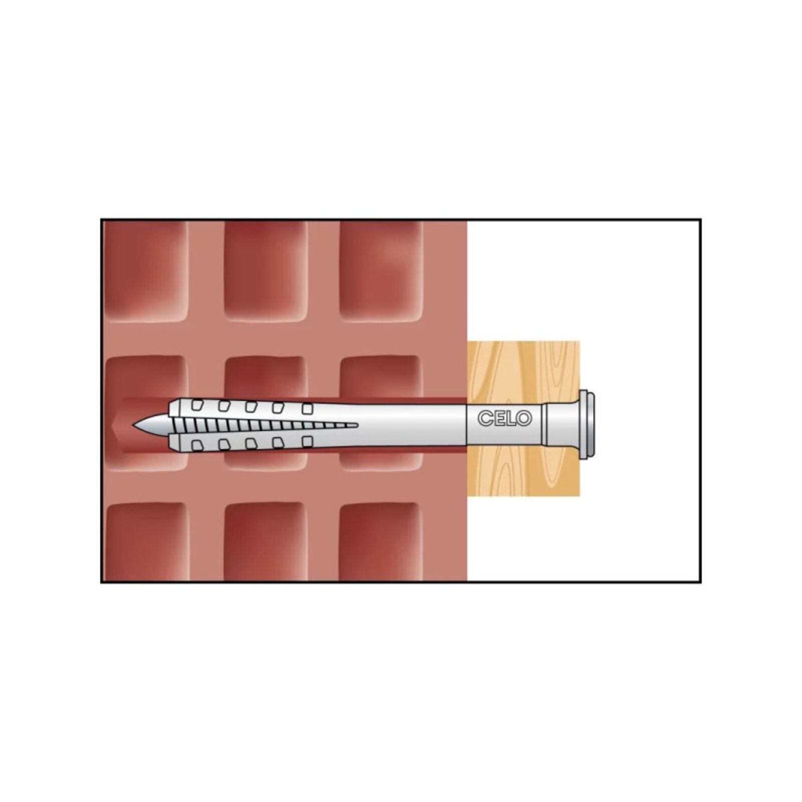 A CELO NP beütős nylon dübel ideális rögzítési eszköz keretekhez, lécekhez, csatornákhoz, szerelvényekhez, bilincsekhez stb. A dübel és csavar közti pontos illeszkedése optimális tágulást, ezzel együtt kiváló húzó terhelhetőséget eredményez. Az integrált beütőzár megakadályozza a dübel előterpesztését kalapáláskor. A PZ hornyú csavar fejrészén kialakított gyűrű védi a csavart beütéskor, így később gond nélkül ki, illetve vissza csavarozható.Alkalmazások Fal csatlakozások Gipszkarton profil Profilok Rögzítőszalagok Fóliák Fémlemezek Fagerendák Bilincsek Perforált szalagokTovábbi specifikációkFőbb jellemzők: Villamossági bilincsek, sínek, lécek, keretek stb. gyors rögzítéséhez Alkalmas ajtó- és ablakkeret rögzítésére is A precíz tervezésnek és gyártásnak köszönhetően kiváló kihúzó eredmények Az integrált beütőzár megakadályozza a dübel előterpesztését Robosztus, erős beütő csavar A PZ hornyú beütő csavar könnyen ki- és becsavarozható Átmenő rögzítésekhez Kiváló minőségű és öregedésálló nylon Hőállóság: -40°C-tól +80 °C-igAlapanyagok: Beton Tömör tégla Tömör mészhomok tégla Könnyű, tömör beton blokk Természetes kő Pórusbeton Üreges tégla Üreges mészhomok téglaTechnikai adatok Bevonat Galvanizált Anyag Nylon Horony típusa PZ3 Bilincs anyaga Acél Dübel típusa Süllyesztett fejű Furat átmérő (mm) 8 Furat mélység (mm) 50 Rögzítési mélység (mm) 40 Dübel hossz (mm) 60 Vastagság (mm) 20