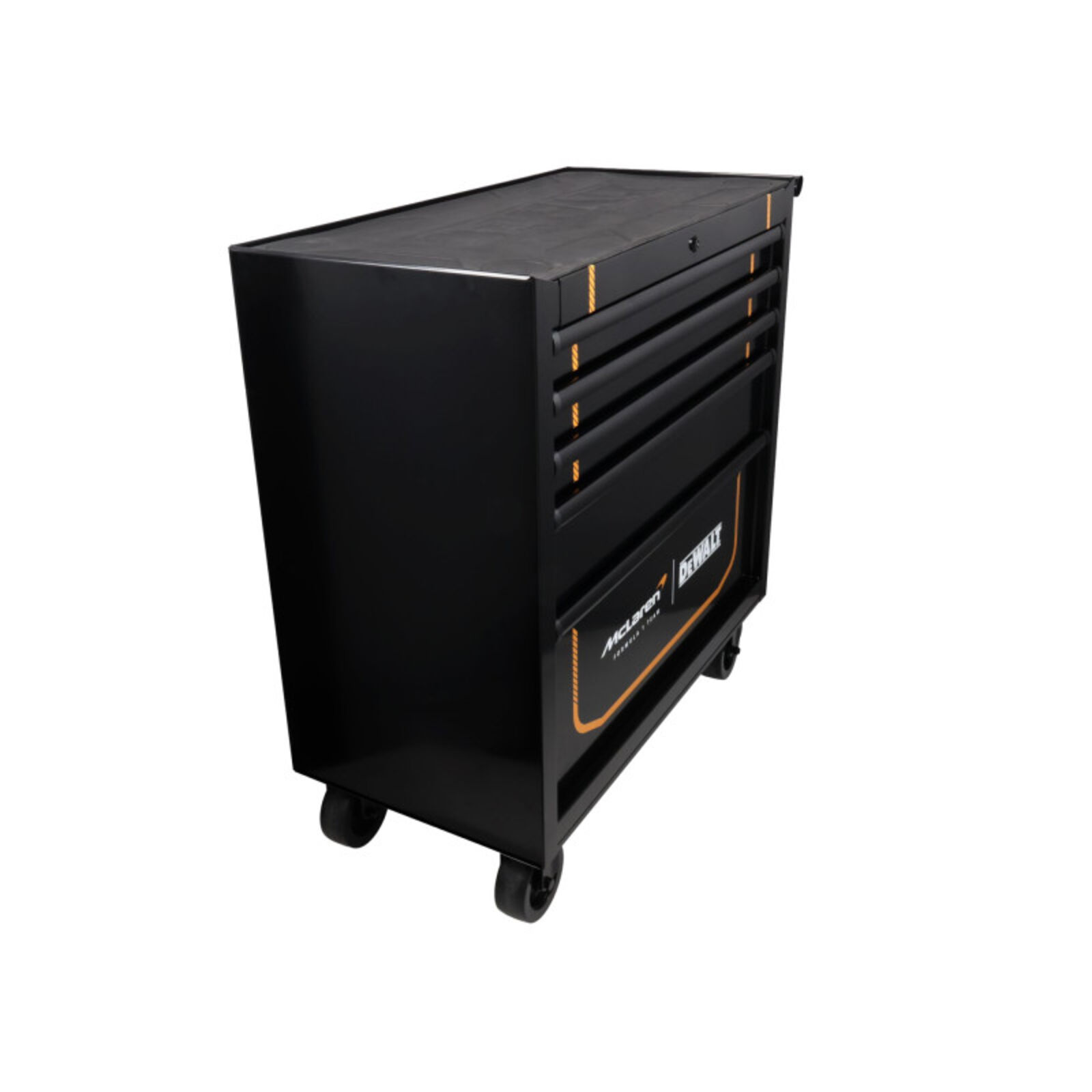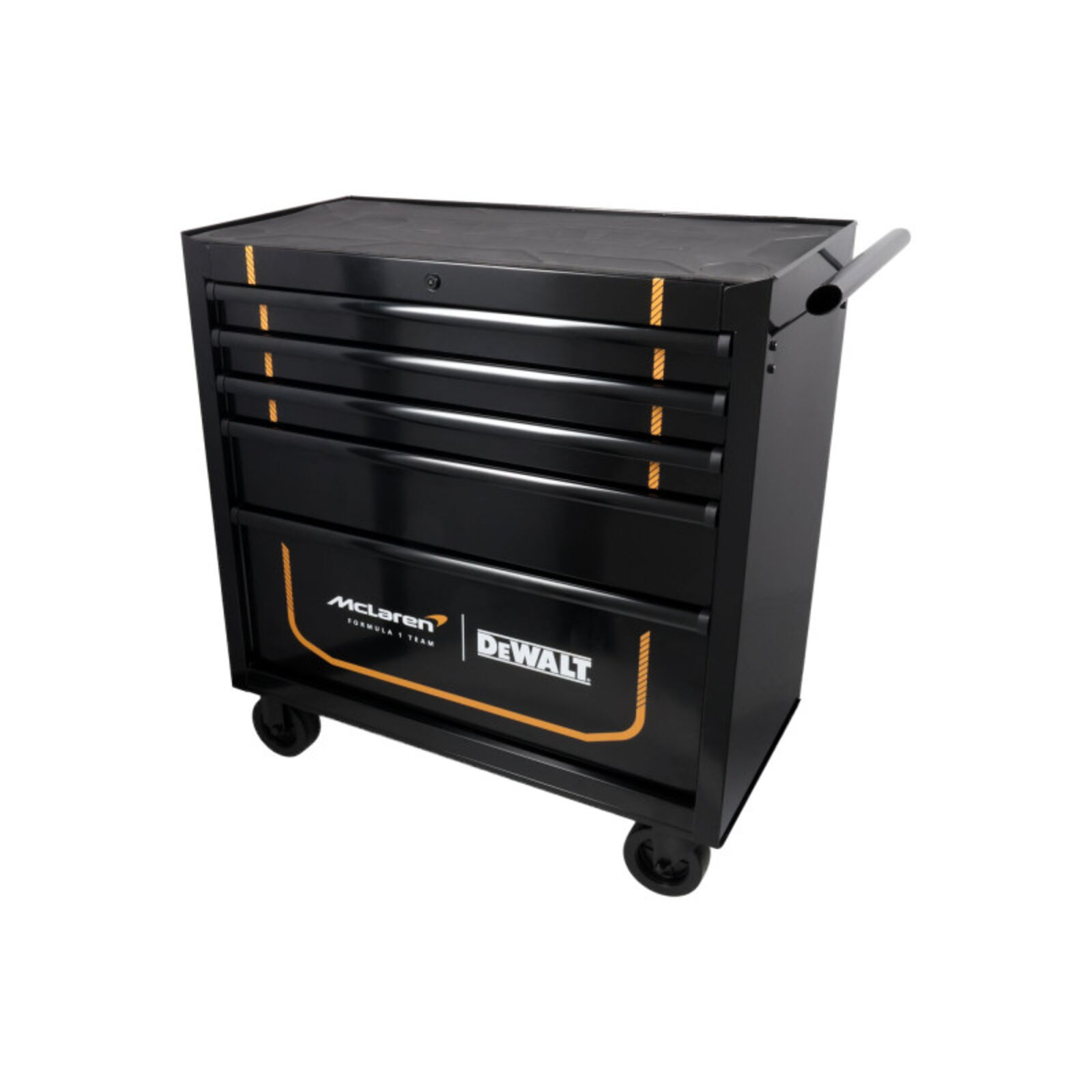 Bemutatjuk a DEWALT® × McLaren F1 Team különleges kiadású görgős szekrényt, amelyben a kiváló tervezés találkozik a magas oktánszámú innovációval. Ez a különleges kiadású tárolási megoldás a DEWALT® legendás szívósságát egyesíti a McLaren F1-csapatának maximalista teljesítményorientáltságával.Akár a boxutcában van, akár a munkaterületen, fedezze fel a bajnokokat segítő rendezettséget és megbízhatóságot.A maximális tárolási lehetőséget és hatékonyságot igénylő felhasználóknak készült görgős szekrény mély (457 mm-es) kialakítással rendelkezik az extra kapacitás érdekében.A csúszásmentes fiókbetétek tökéletesen rendben tartják a szerszámokat, míg a nagy teherbírású fiókcsúszók még erős igénybevétel során is zökkenőmentes és tartós működést biztosítanak. Az önbehúzó fiókok biztonságosan és könnyedén csukhatók, és a belső zárszerkezet tovább fokozza a biztonságot, hogy felszerelése mindig készen álljon a bevetésre, akárcsak a McLaren F1-csapata.TERHELHETŐSÉG: a kisebb fiókoknál akár 45 kg, a nagy alsó fióknál akár 90 kg.CSILLAPÍTÓS FIÓKOK: a könnyű és gyors záráshoz.GUMISZŐNYEGEK MINDEN EGYES FIÓKBAN: biztonságosan a helyükön tartják a szerszámokat.KÖZPONTI ZÁRRENDSZER ÉS BIZTONSÁGOS FIÓKOK: hogy még szállítás közben se nyíljanak ki.EXTRA ERŐS KEREKEK: 127 mm × 50,8 mm méret.2 fix kerék, 2 forgó kerék fékkel.OLDALFOGANTYÚ: a könnyű manőverezésért.KIS FIÓK BELSŐ MÉRETEI (×3): 803 SZ × 338 MÉ × 49 MA (hátul) / 64 MA (elöl) mmKÖZEPES FIÓK BELSŐ MÉRETEI (×1): 803 SZ × 338 MÉ × 124 MA (hátul) / 147 MA (elöl) mmNAGY FIÓK BELSŐ MÉRETEI (×1): 803 SZ × 338 MÉ × 277 MA (hátul) / 292 MA (elöl) mm