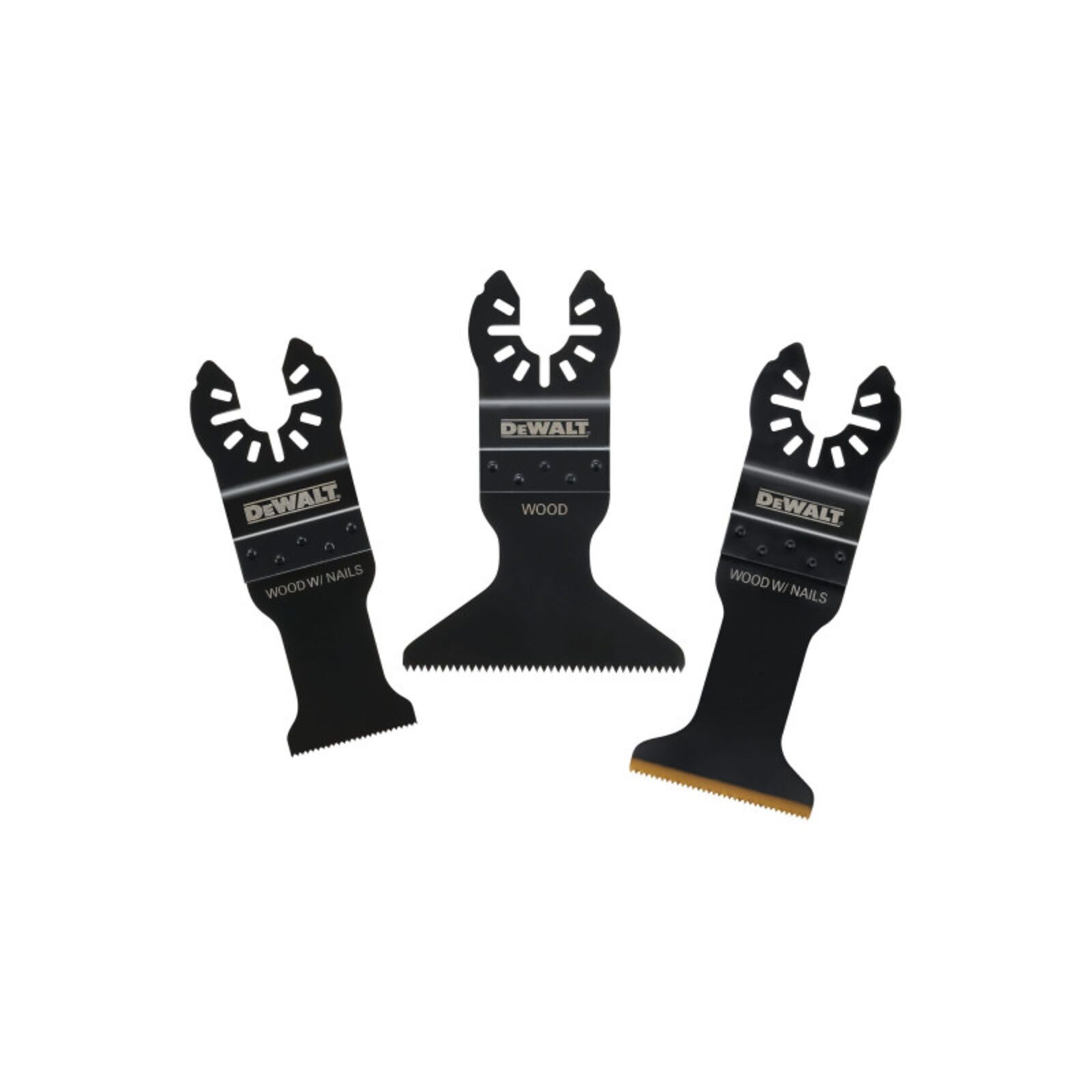 Vegyes készlet öt multifunkciós pengévelKaparókés, ideális tömítőanyagok és ragasztók eltávolításához.Négy darab favágó penge különféle vágási feladatokhoz.Éles vágóélek a szilánkmentes vágásokhoz.Szerszám nélküli, gyors és egyszerű pengecsere és illesztés minimális leállásidővel.Fához, gipszkartonhoz, műanyagokhoz, tömítőanyagokhoz, ragasztókhoz használható A készlet tartalma:1 db DeWalt Fa és szögvágó penge L 43mm x W 31mm (DT20701)1 db DeWalt Titanium Fa/Fém penge 55x42mm (DT20702)1 db DeWalt Gyorsvágólap fához L 43mm x W 66mm (DT20705)
