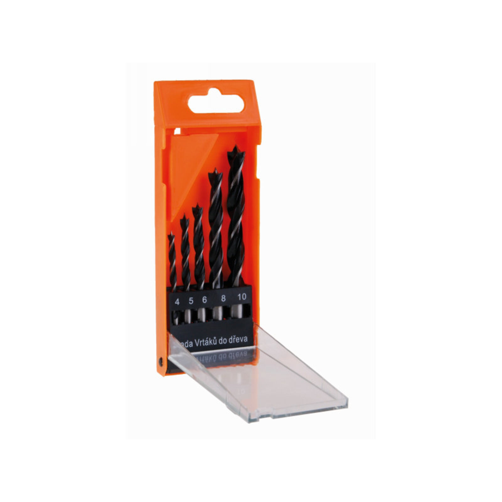 Set of the most commonly used drill bits 4, 5, 6, 8, 10 mm for wood, use: for general workshop and DIY use, drilling into wood, chipboard, OSB panels..., packaging - foil.