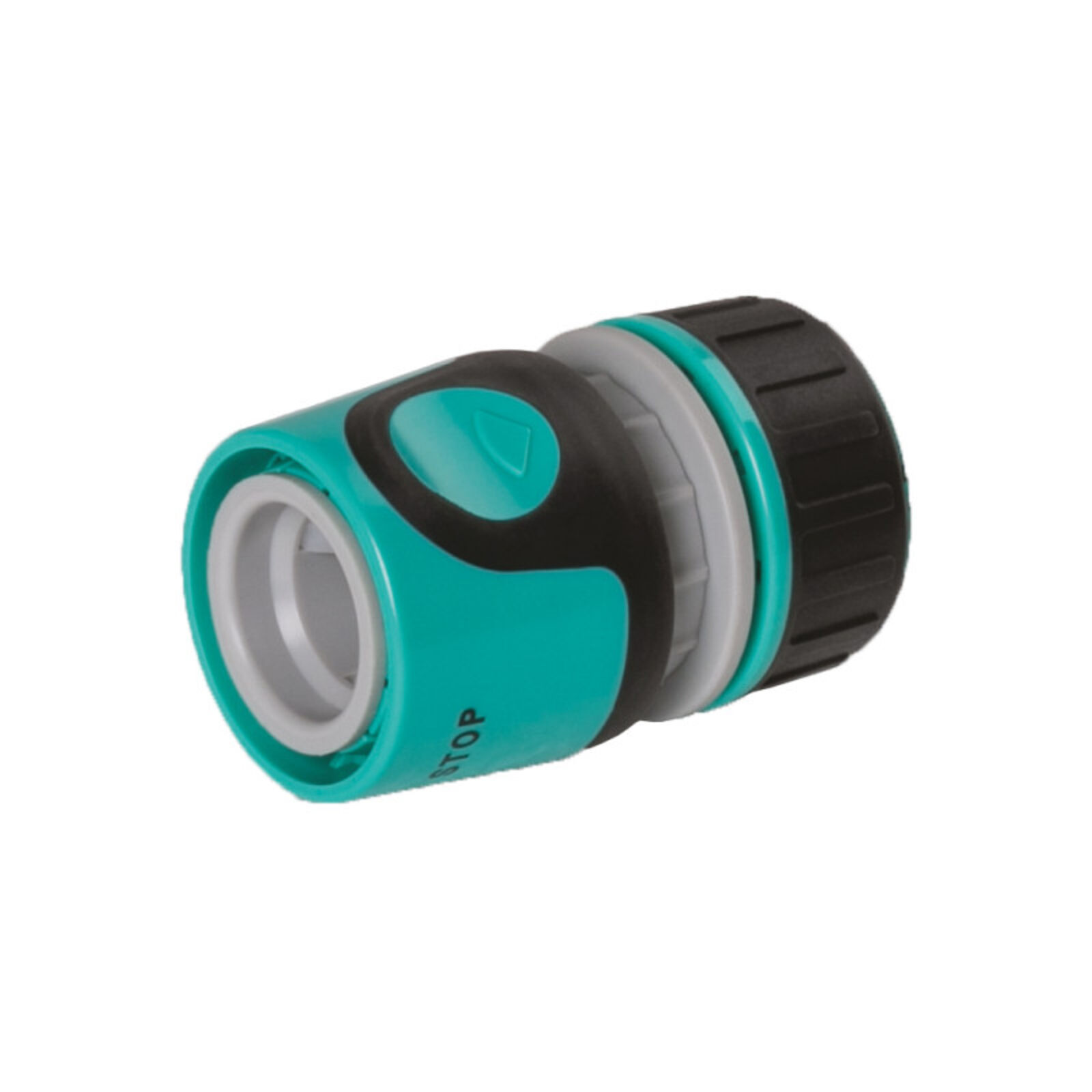 the precise level of processing and the combination of materials used place FESTA AQUATATIC products among professional brands in irrigation 1/2" hose quick coupling with STOP valve easy and tight attachment to the 1/2" hose, connection mechanism with three-point attachment to the gun or adapter internal construction STOP the quick coupling allows the water pressure to shut off its flow when switching - changing the gun, sprayer, etc. compatible with ROSA products