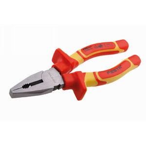 The VDE combination pliers 200 mm FESTA are certified electro VDE 1000 V, IEC/EN 60900-2004, the combination of polypropylene and rubber on the ergonomically shaped handles guarantees excellent anti-slip properties and good resistance to lubricants and chemicals. Gripper jaws particularly wear-resistant, chrome vanadium high-performance steel. Weight 0.383 kg.