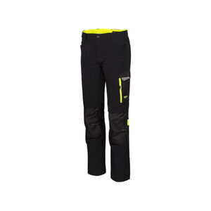 Anyagösszetétel: 90% nejlon, 10% elasztán – 250g/m2 twillTeljes főanyagában 4-irányban elasztikus alapanyag, megerősített szakadás elleni védelemmelDupla és tripla varrás – 2×-3× erősebb a kritikus pontokonLégáteresztőUltrakényelmes, ergonomikusModern fit szabás a modern megjelenésértMegemelt hátsó derékrész a lecsúszás ellenMegerősített, Cordura® hátsó nadrágszár végződés a letaposás ellenRugalmas, gumírozott derékRejtett gombos gumiszalaggal állítható derékbőségTépőzáras, megerősített Cordura® térdfolt a térdvédő elhelyezéséreFényvisszaverő és jól látható elemekGombos záródás, cipzáras sliccelMegerősített, vastag övbújtatók4 szerszámtartó zseb + 3 szerszámbújtató a jobb oldalon1 tépőzáras oldalzseb zsebfedővel + 1 cipzáras oldalzseb a bal oldalon2 megerősített Cordura® farzseb tépőzáras zsebfedővelOldalsó svédzsebek megerősített belsővelMindennapos, szabadidős vagy otthoni használatra isOEKO-TEX® tanúsított alapanyag40 °C-on mosható, max. 110 °C-on vasalhatóSzín: fekete-fluoreszcens sárga