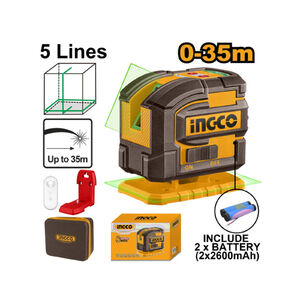 INGCO Akkus 5D keresztvonalas lézer 0-35 m 5,2 Ah zöld lézerrel, távirányítóval