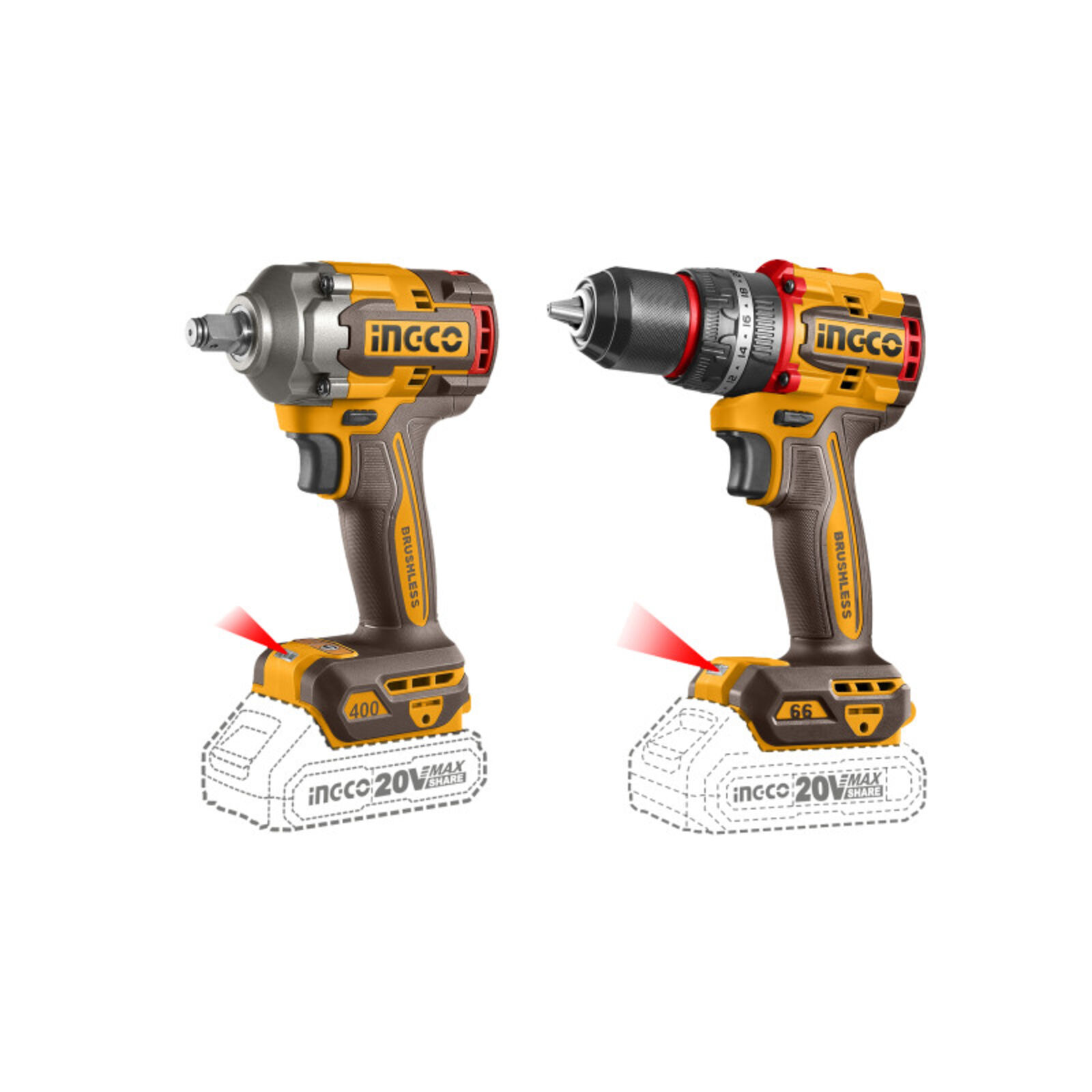INGCO Akkus erőcsomag 20 V Ütvefúró-csavarozó 66 Nm+Ütvecsavarozó 1/2" 405 Nm (2 db akku + töltő)