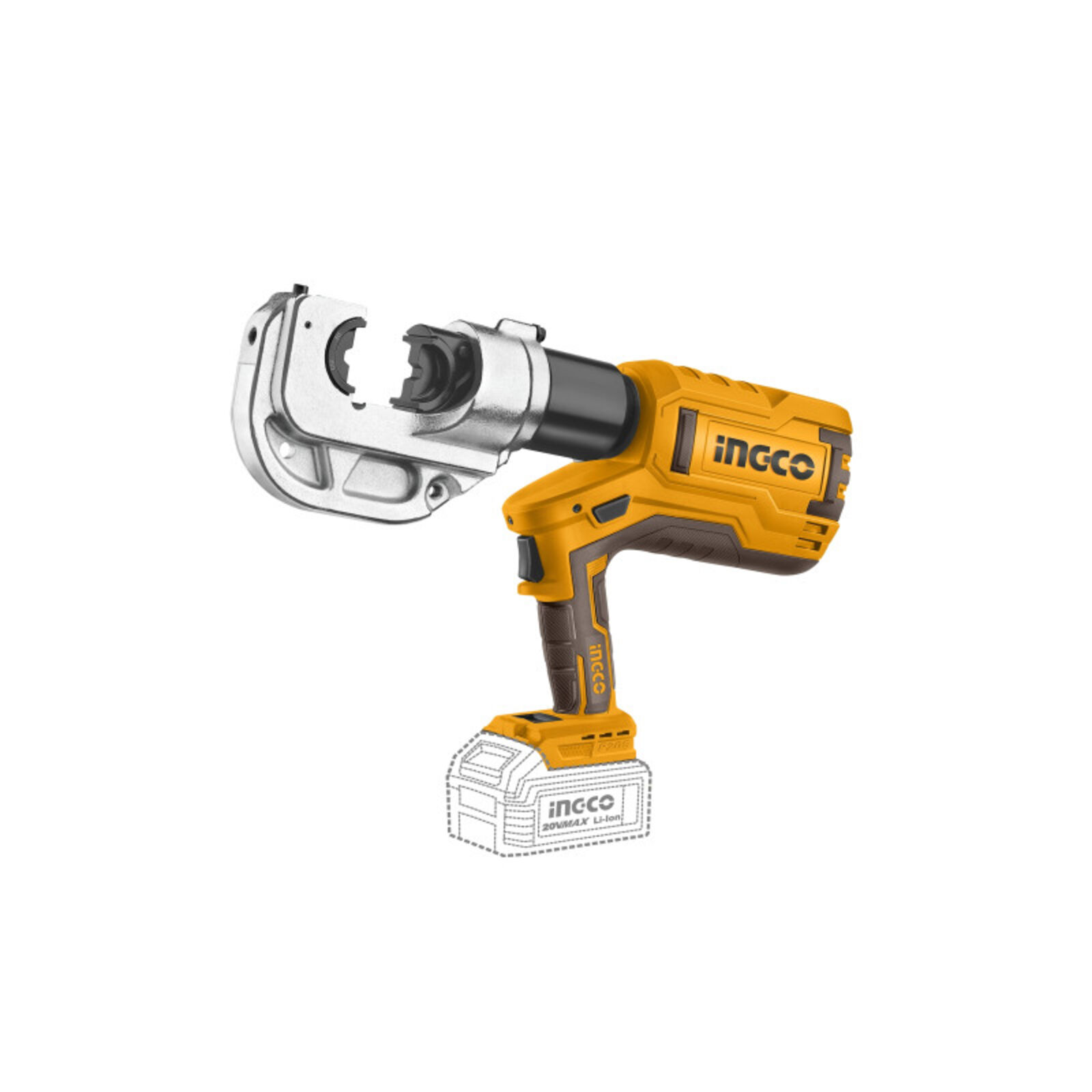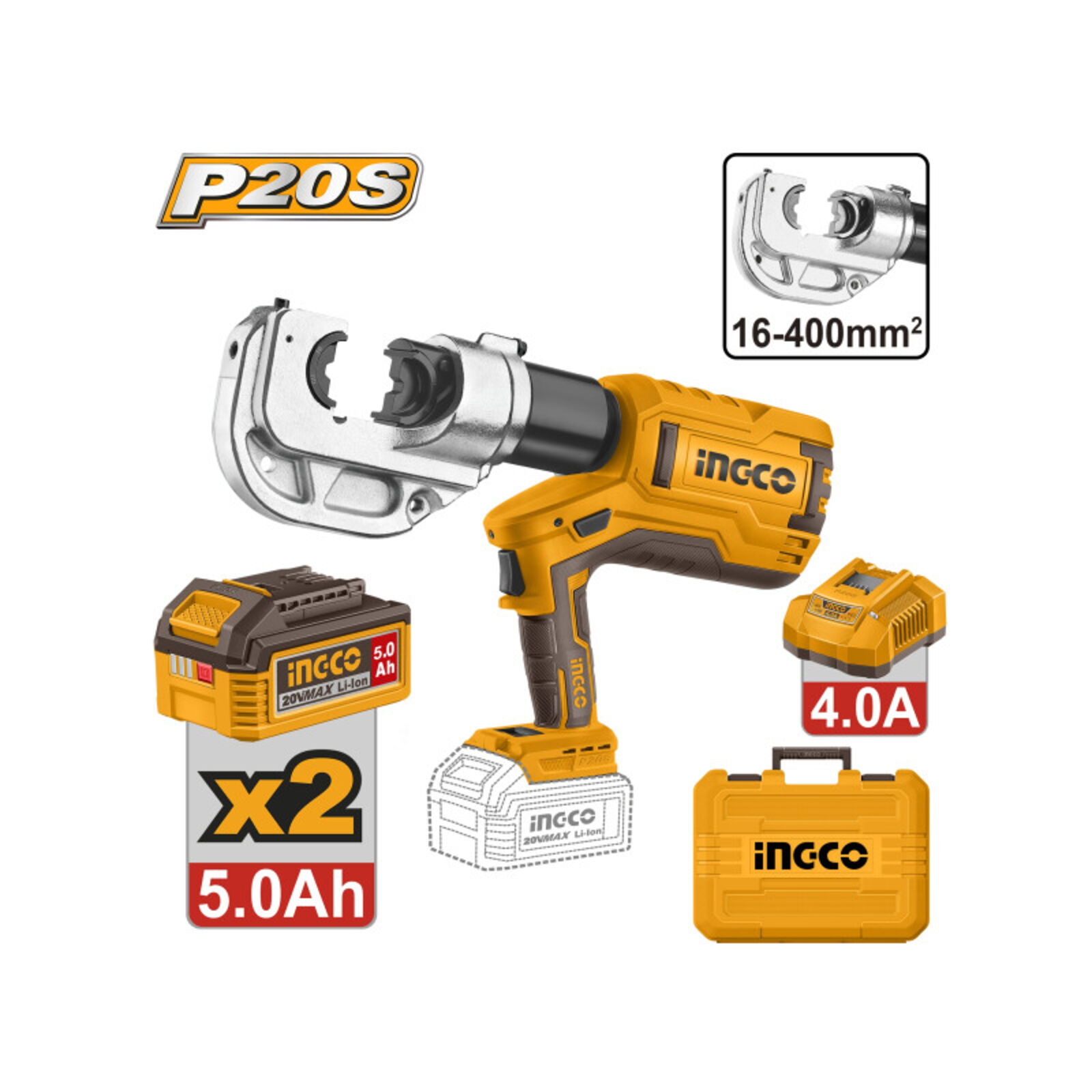 INGCO Akkus hidraulikus kábelkrimpelő 16-400 mm2 (2 x 5,0 Ah akku + töltő)