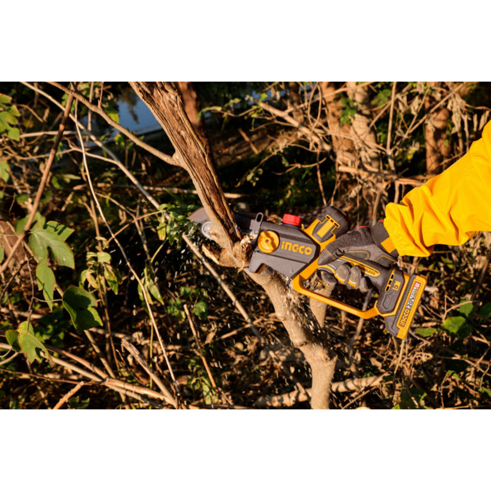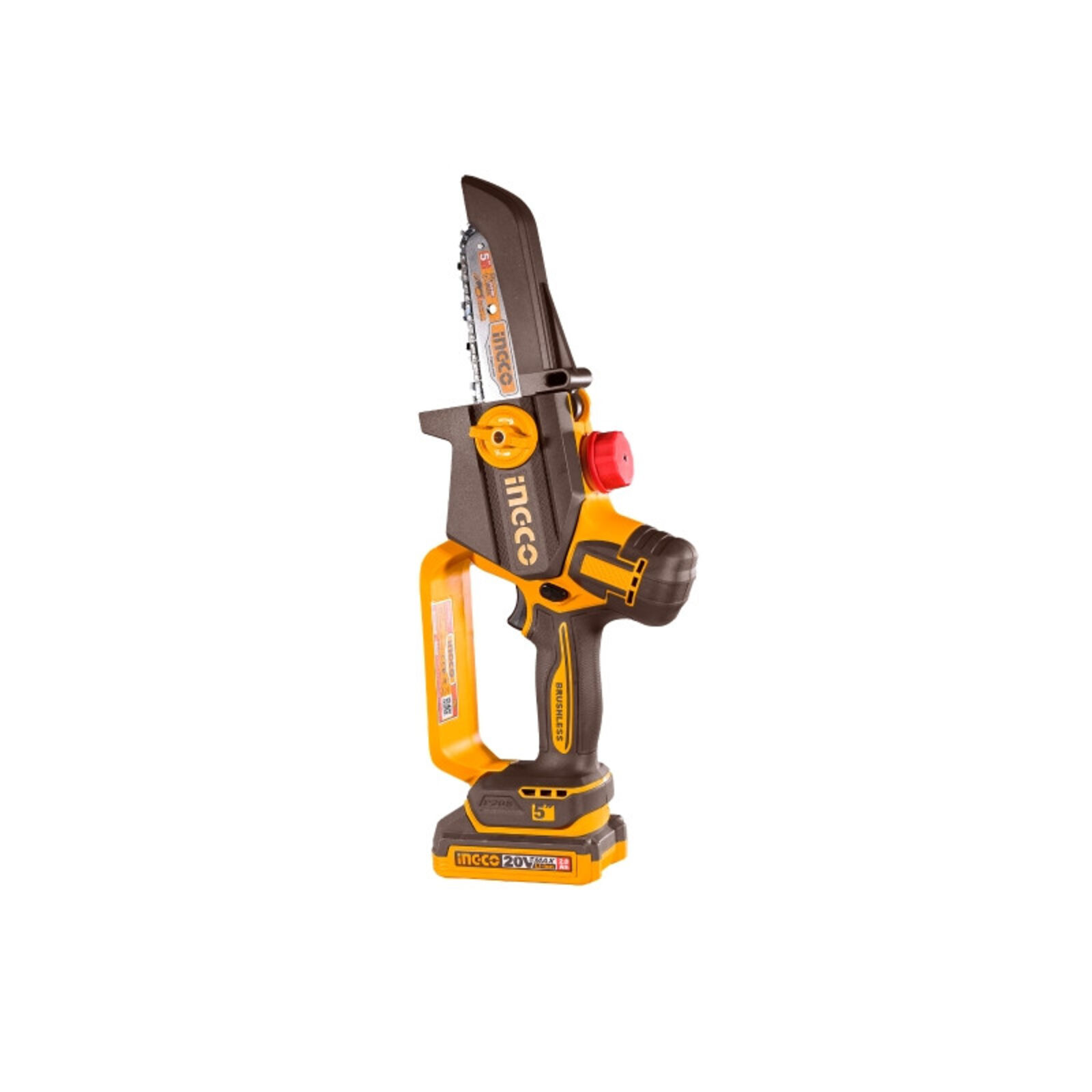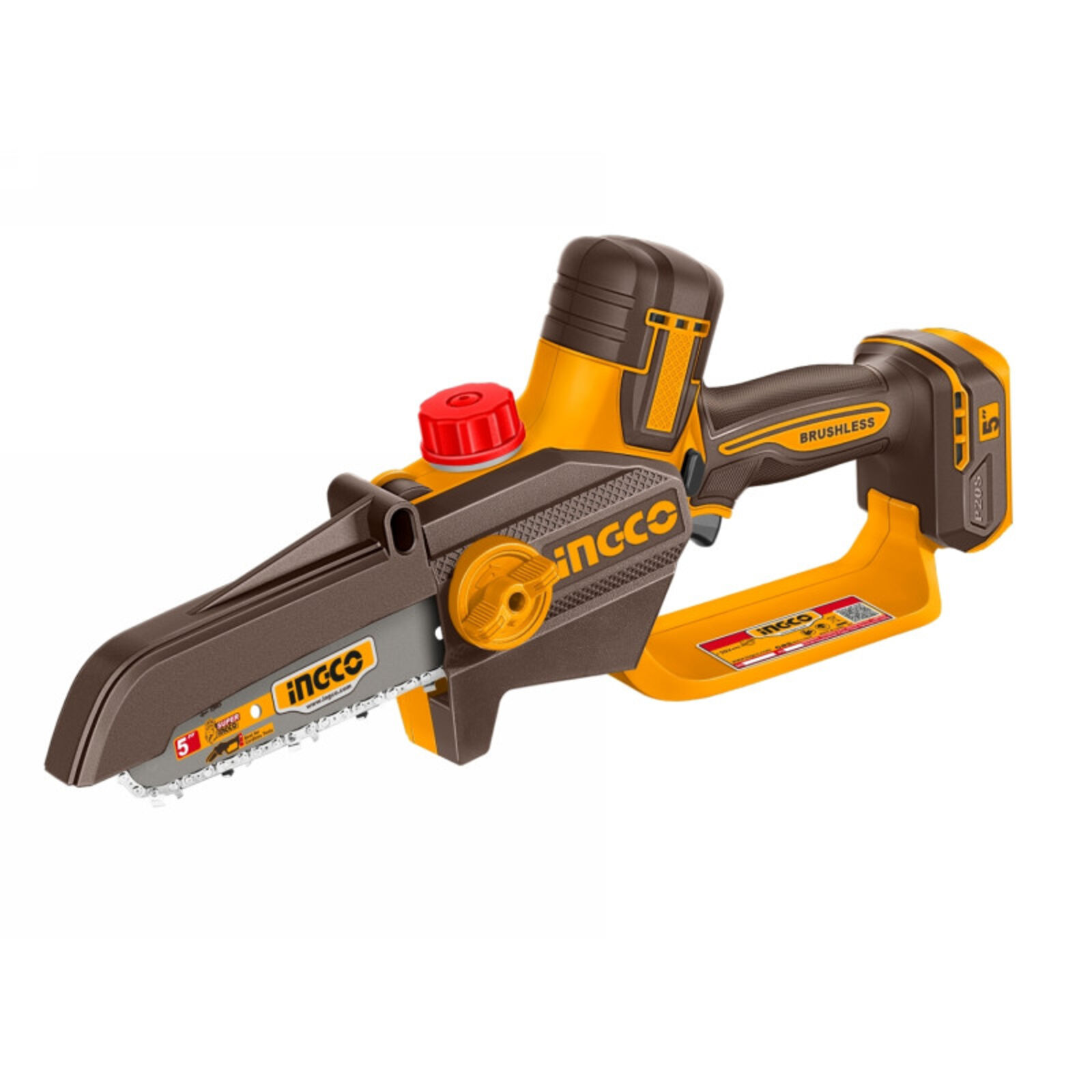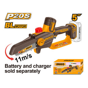 INGCO Akkus láncfűrész 127 mm szénkefe nélküli 20 V (akku és töltő nélkül)