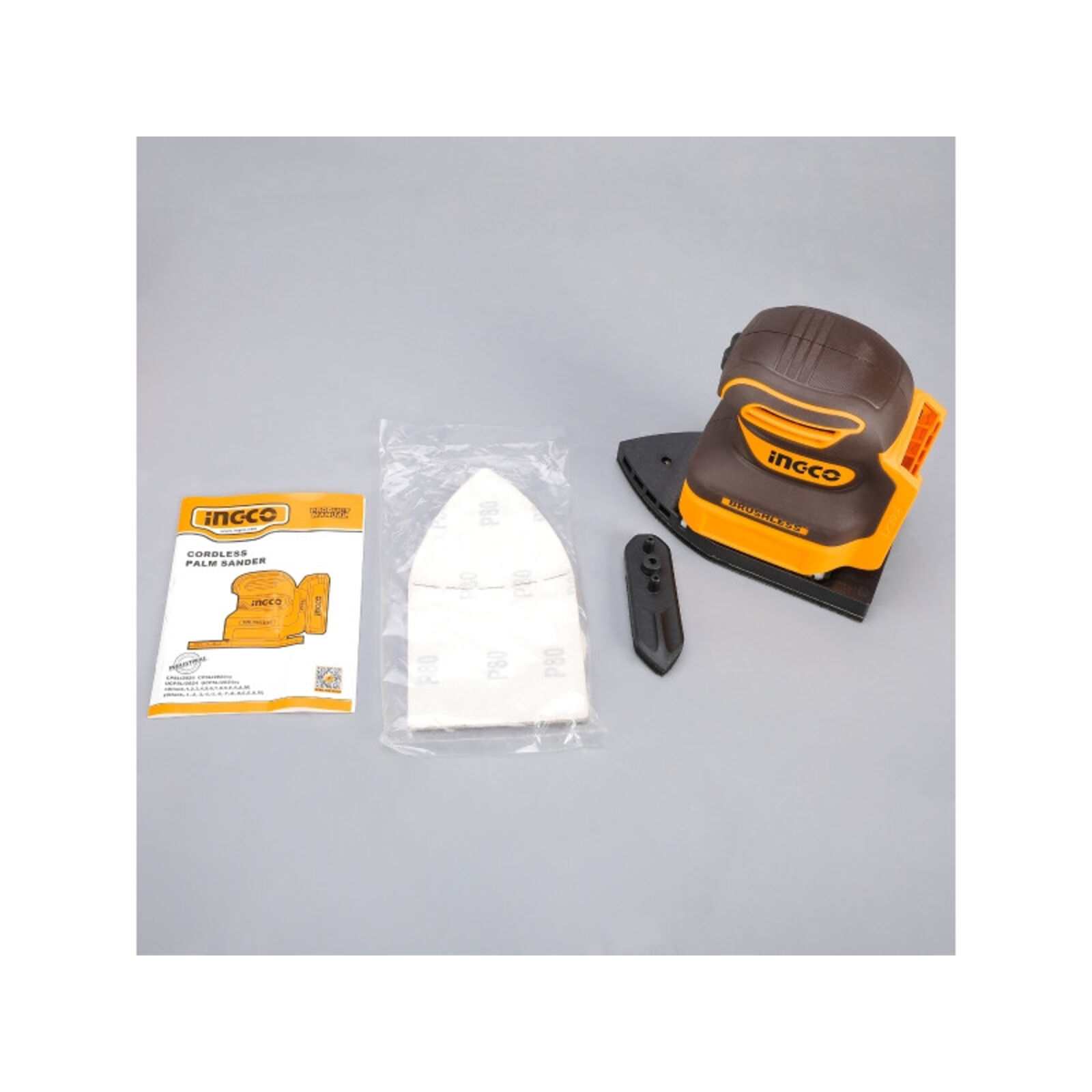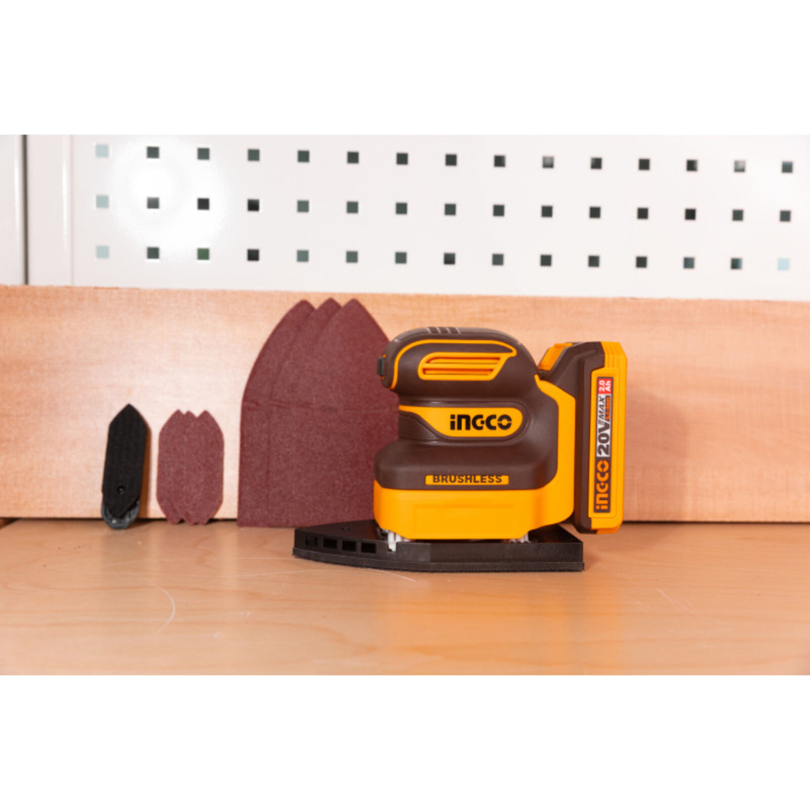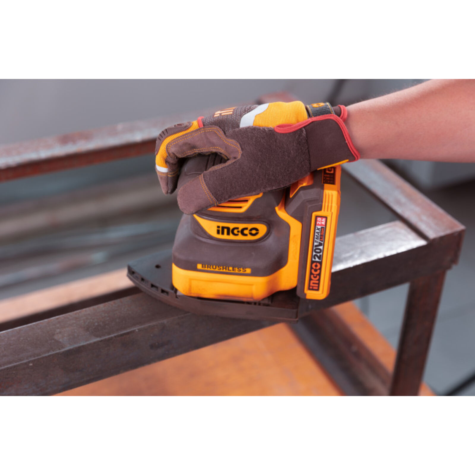 INGCO Akkus rezgőcsiszoló szénkefe nélküli 20 V (akku és töltő nélkül)