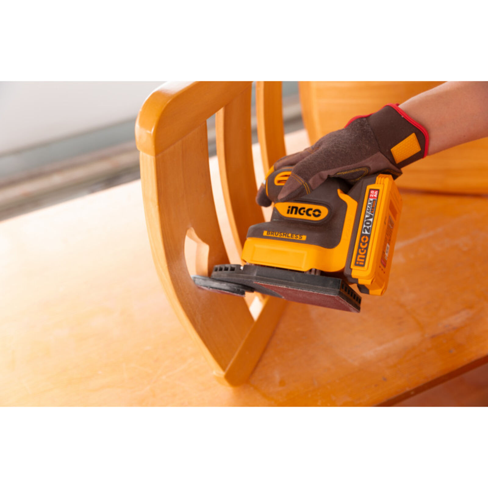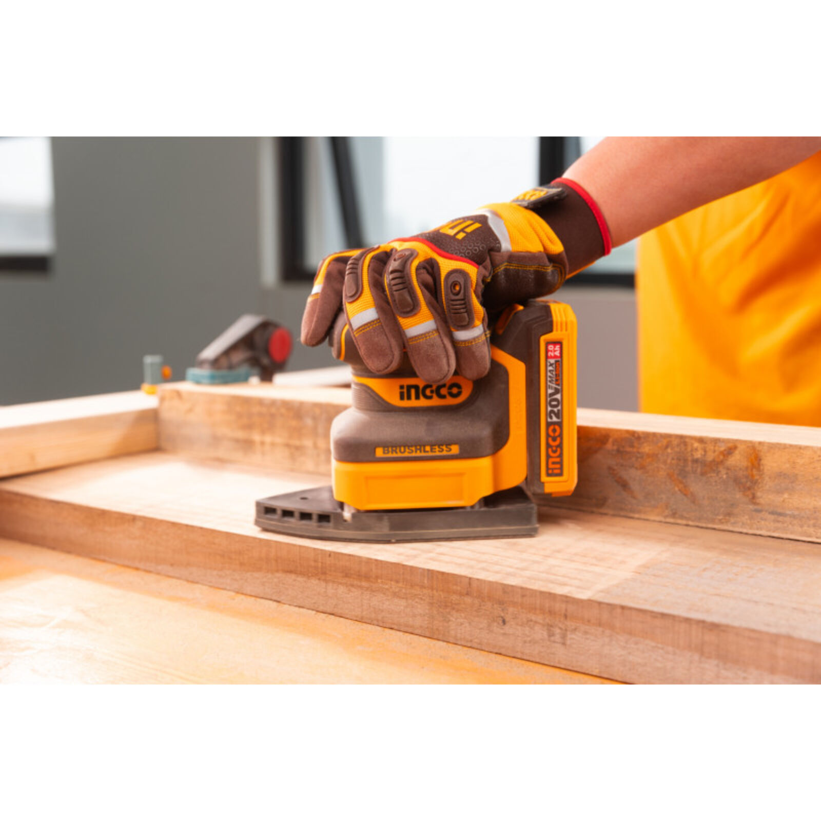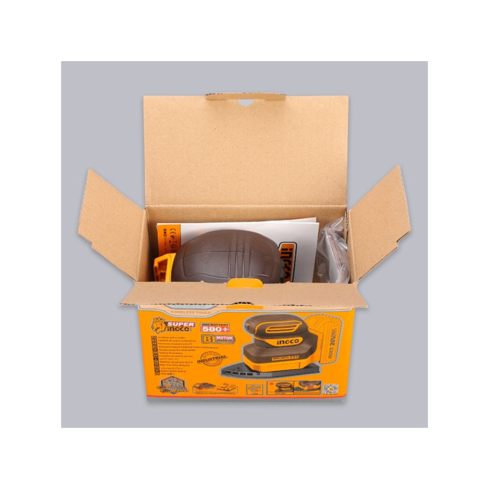 INGCO Akkus rezgőcsiszoló szénkefe nélküli 20 V (akku és töltő nélkül)