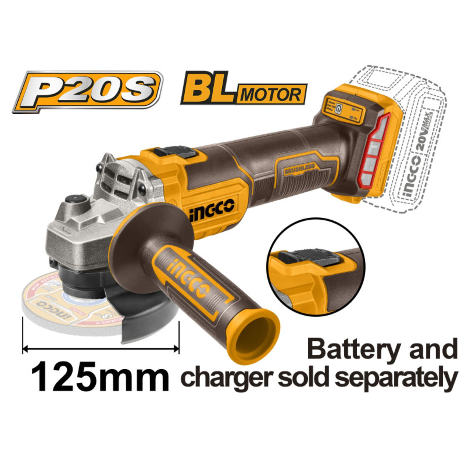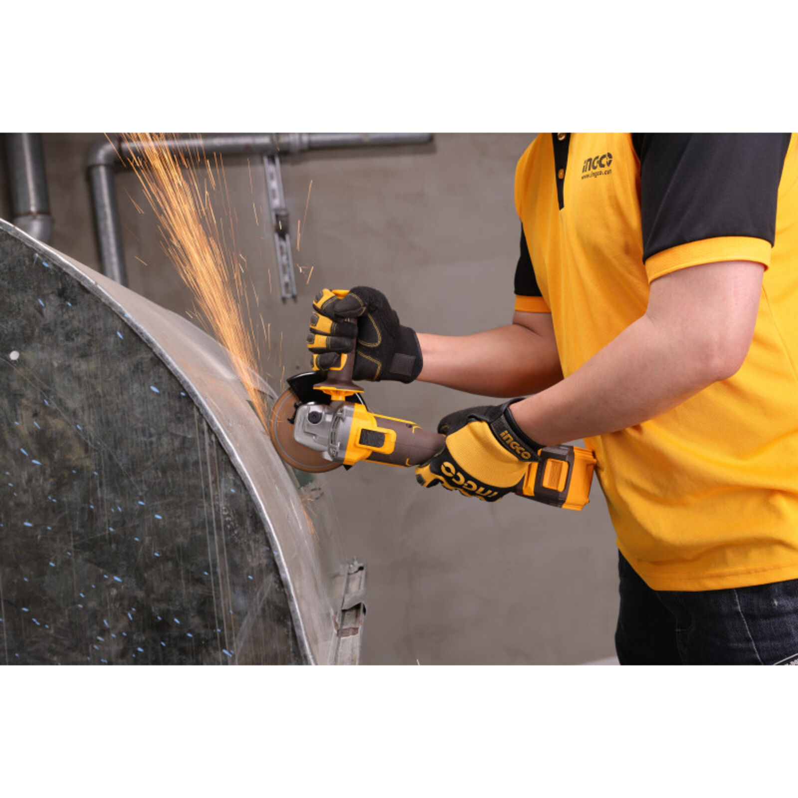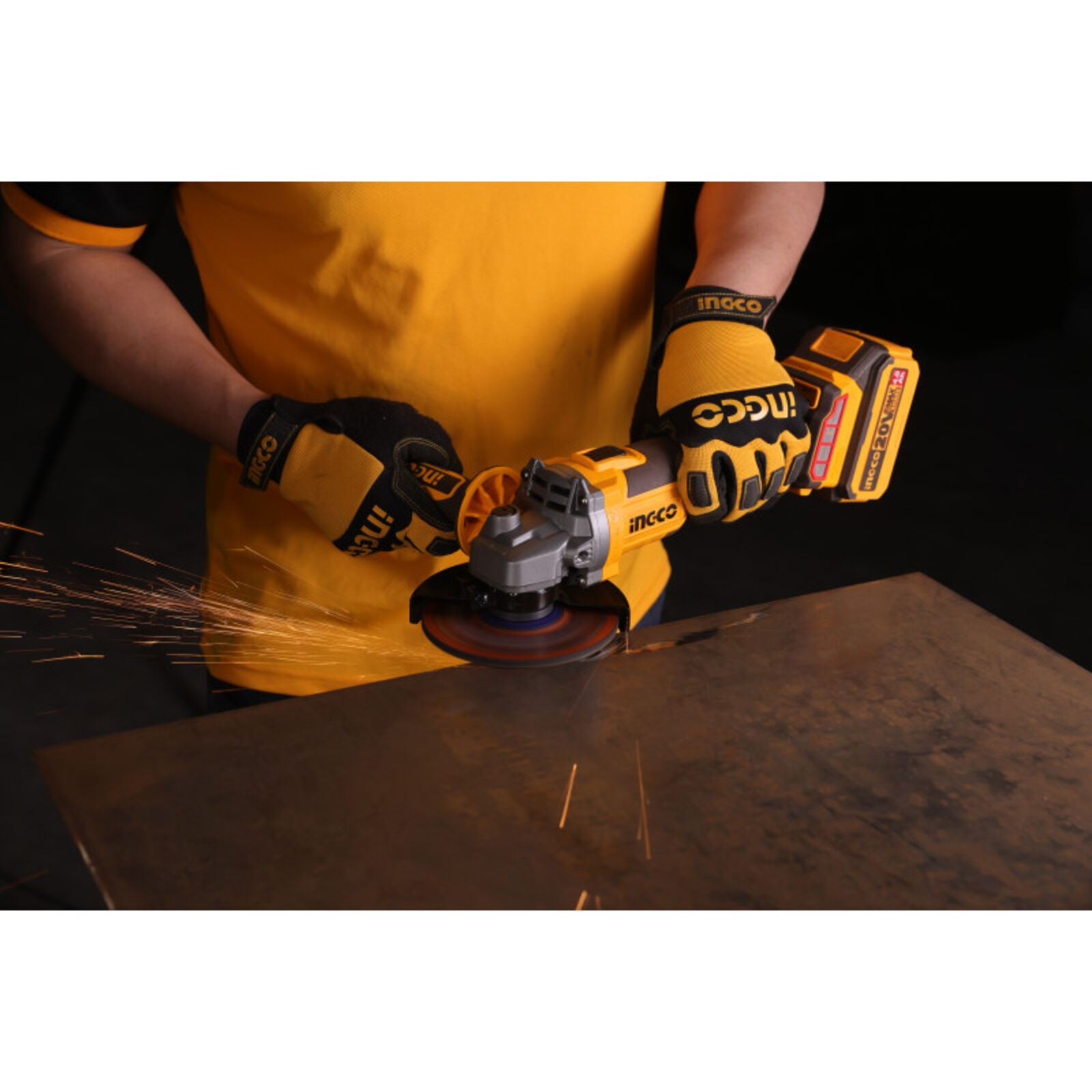 INGCO Akkus sarokcsiszoló 115 mm szénkefe nélküli 20 V (akku és töltő nélkül)