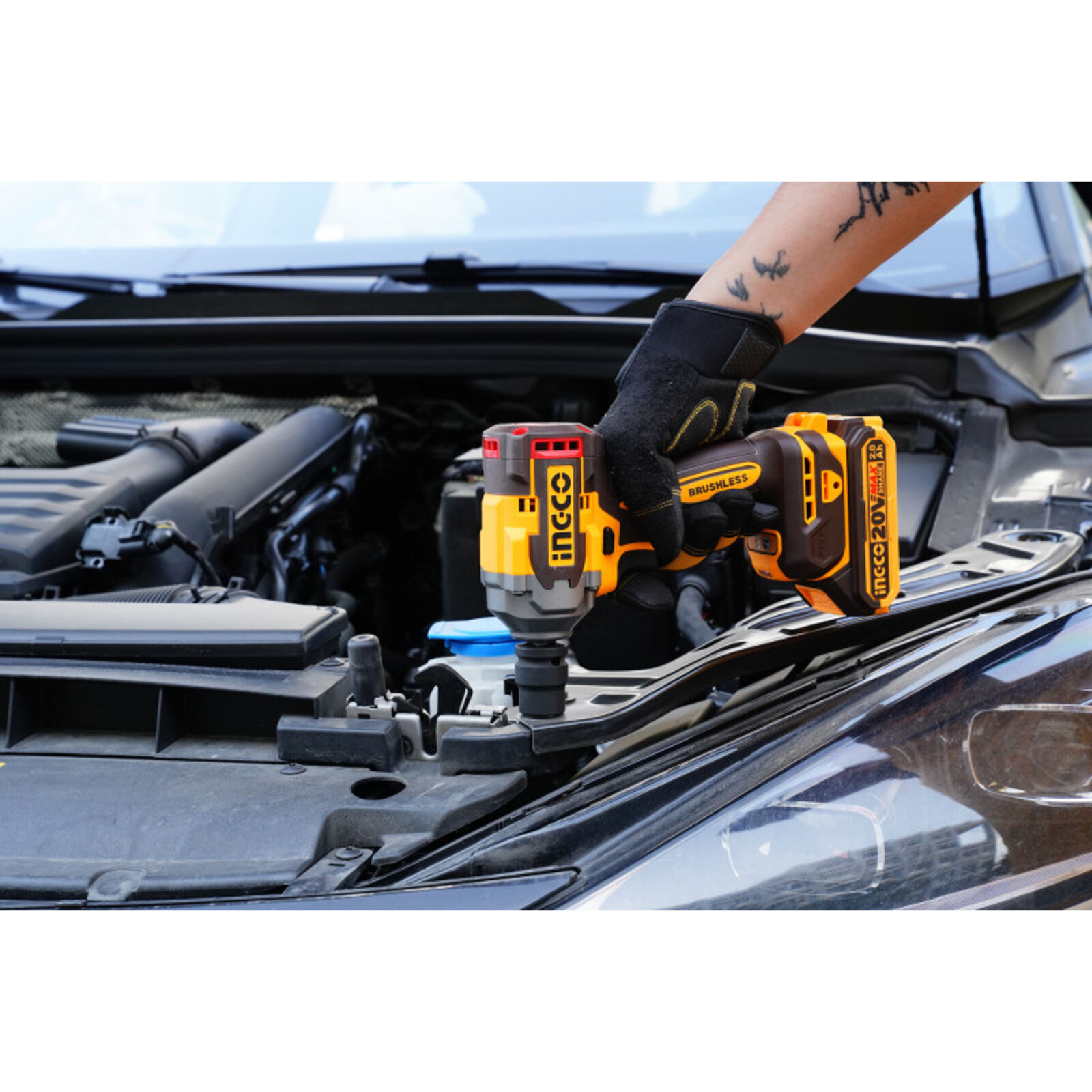 INGCO Akkus ütvecsavarozó 1/2" 405 Nm szénkefe nélküli 20 V (2 x 2,0 Ah akku + töltő)