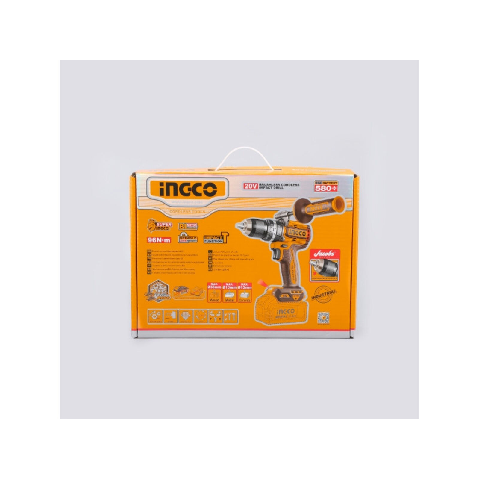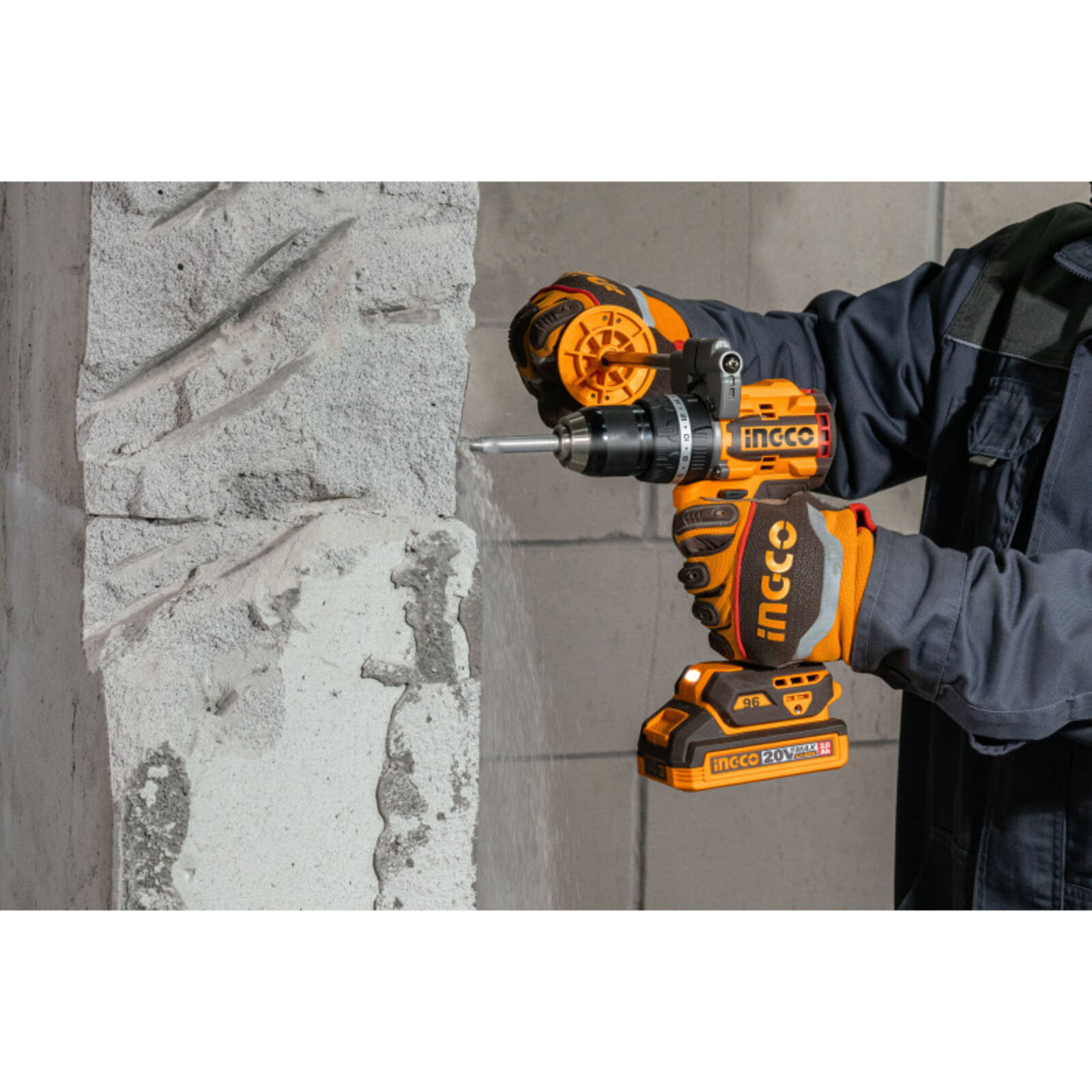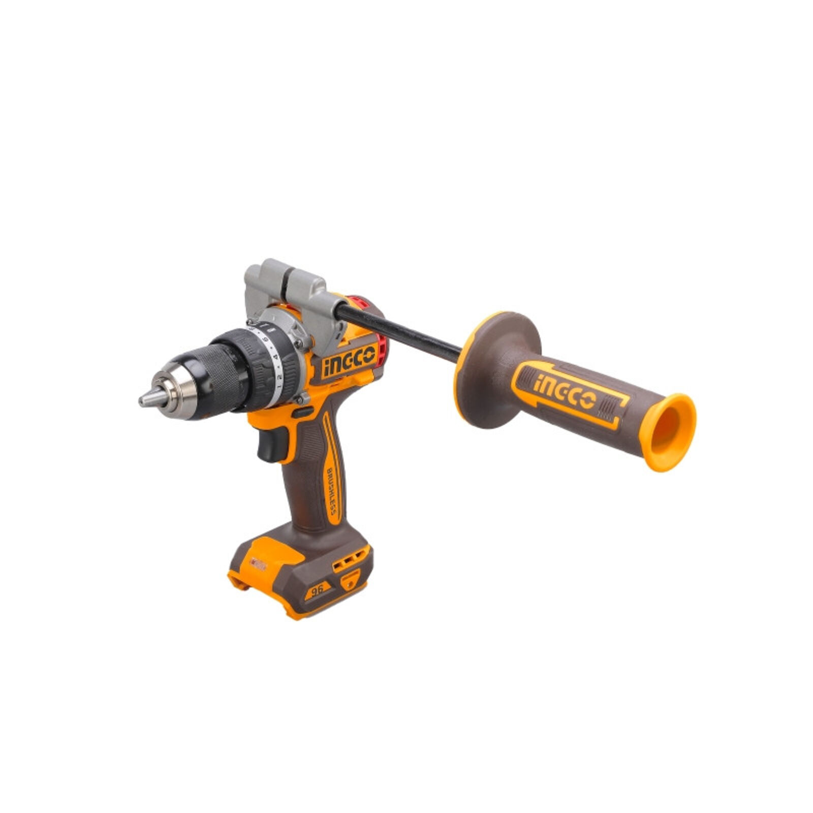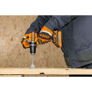 INGCO akkus ütvefúró-csavarozó 96 Nm, szénkefe nélküliAz INGCO 96 Nm nyomatékú akkus ütvefúró-csavarozó nagy teljesítményű, sokoldalú szerszám fúrási és csavarozási feladatokhoz. A szénkefe nélküli motor nagyobb hatásfokot, hosszabb élettartamot és alacsonyabb karbantartási igényt biztosít.A kétfokozatú mechanikus sebességváltó lehetővé teszi a fordulatszám és a nyomaték optimális beállítását különböző anyagokhoz. A 96 Nm maximális nyomaték erőteljes csavarozást és nagy átmérőjű fúrásokat is lehetővé tesz. Az ütvefúró funkció akár 31 500 ütés/perc értékkel hatékony fúrást biztosít falazatban.A masszív, 13 mm-es Jacobs fém tokmány stabil szerszámbefogást nyújt, míg az oldalfogantyú nagyobb kontrollt biztosít nagy terhelésű munkák során. Főbb előnyökSzénkefe nélküli motor a hosszabb élettartamért96 Nm maximális nyomaték nagy terhelésű feladatokhozÜtvefúró funkció falazathozKétfokozatú mechanikus sebességváltó13 mm-es Jacobs fém tokmányBeépített LED munkalámpaLED akkumulátor töltöttségjelzőOldalfogantyú a stabilabb fogásért Technikai adatokMotorszénkefe nélküliFeszültség20 VÜresjárati fordulatszám0–550 / 0–2100 ford/percMax. ütésszám31 500 ütés/percMax. nyomaték96 NmTokmányJacobs fém tokmányTokmánybefogás13 mmNyomatékfokozatok22+1+1Sebességváltómechanikus, 2 fokozatOrsórögzítésigenBeépített LED munkalámpaigenLED akkumulátor töltöttségjelzőigen Tartozékok: 3 db lapos fafúró (16, 19, 22 mm)3 db kőzetfúró (5, 6, 8 mm)3 db HSS csigafúró (4, 5, 6 mm)2 db 65 mm impact bithegy (PH2+PH2, PH2+SL6)1 db oldalfogantyúAkkumulátor és töltő külön kaphatóCsomagolás: színes dobozban