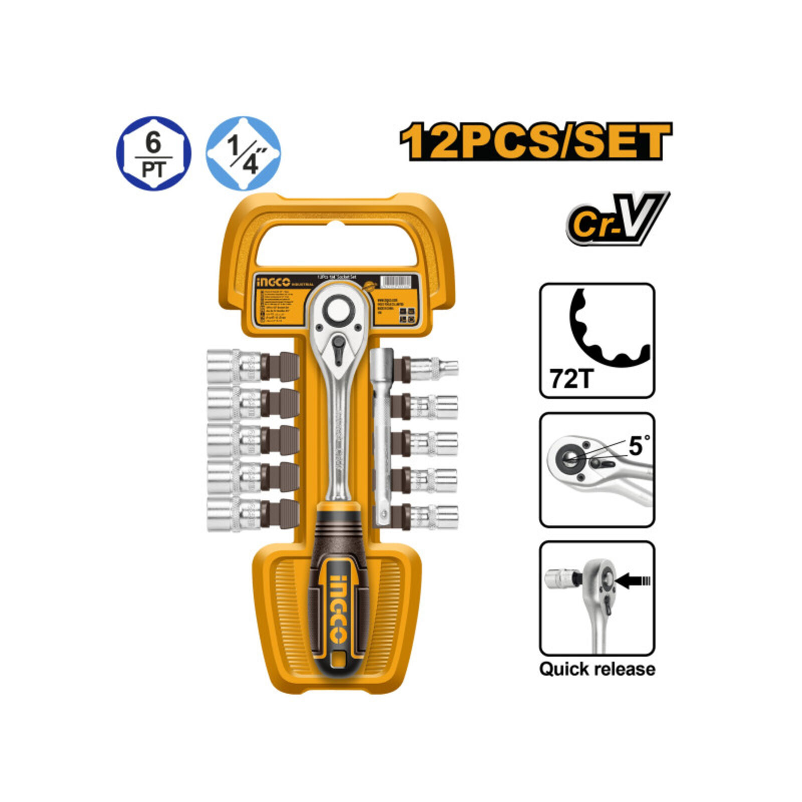 INGCO Dugókulcs készlet 12 részes 1/4" 5-14 mm CrV