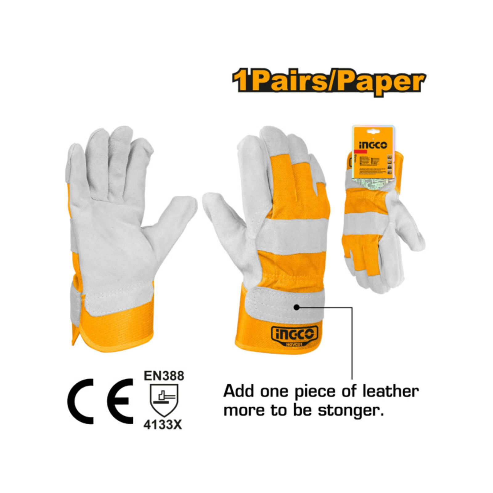 INGCO Rakodókesztyű 10,5 méret vastag marhahasíték, erős vászonnal, nagy igénybevételre