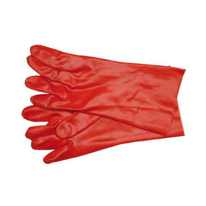 Védőkesztyűk, háztartási vegyi anyag- és tisztítószer-álló piros PVC anyagból. fogó rész: PVC felső rész: PVC hosszú mandzsetta teljes hossz: 36 cm