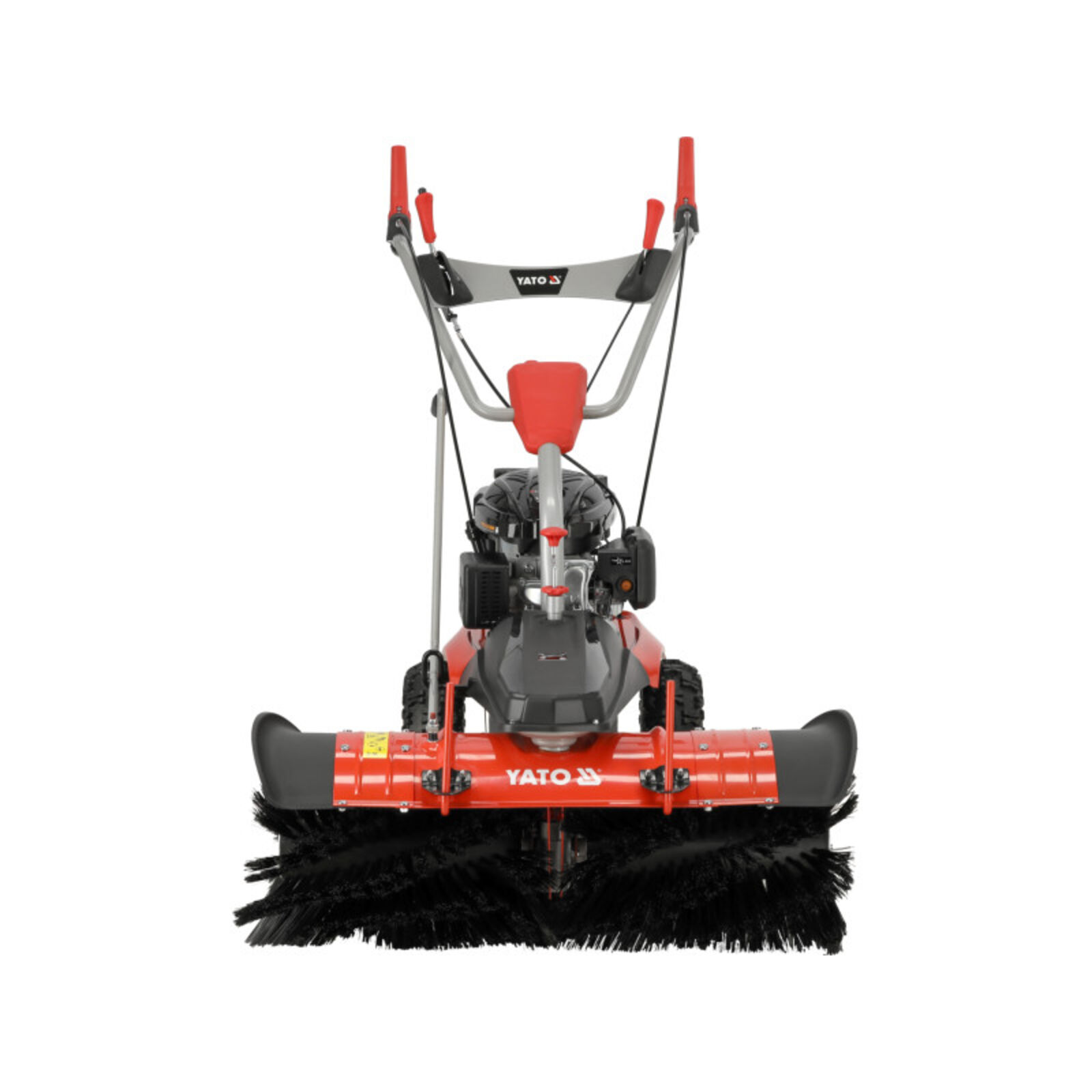 196 cm3 LONCIN motorral felszerelt benzinüzemű seprű, amely nagy teljesítményt és hatékonyságot biztosít a működés során. 100 cm-es munkaszélességével a burkolt felületek gyorsan és hatékonyan tisztíthatók meg homoktól, levelektől, fűtől, sárdaraboktól vagy akár egy vékony hórétegtől is. A seprű ideális járdák, bejárók vagy sétányok tisztítására. Használható hótolóként is. LONCIN LC1P70FC motor típus: belső égésű motor, négyütemű, felső szelep kapacitás: 196 cm3 teljesítmény: 3,5 kW Max. nyomaték: 2800 ford/perc indítás: kézi gyújtógyertya típusa: E7RTC üzemanyag típusa: ólommentes benzin E10 motorolaj típusa: SAE 15W-40 üzemanyagtartály kapacitása: 1 liter olajteknő kapacitása: 0,6 liter munkaszélesség: 1000 mm seprűszög beállítás: 22,5° balra/jobbra sebességszabályzás kefe átmérő: 350 mm vastag sebesség: 3 előre meneti és 1 hátrameneti sebességfokozat fémház 3 állású kar beállítás kerék átmérő: 9" elöl, 13" hátul súly: 81kg zajkibocsátás: 102dB Cserélhető alkatrészek vásárolhatók: YT-85605 - gyűjtő a seprűhöz YT-85606 - tolólap a seprűhöz