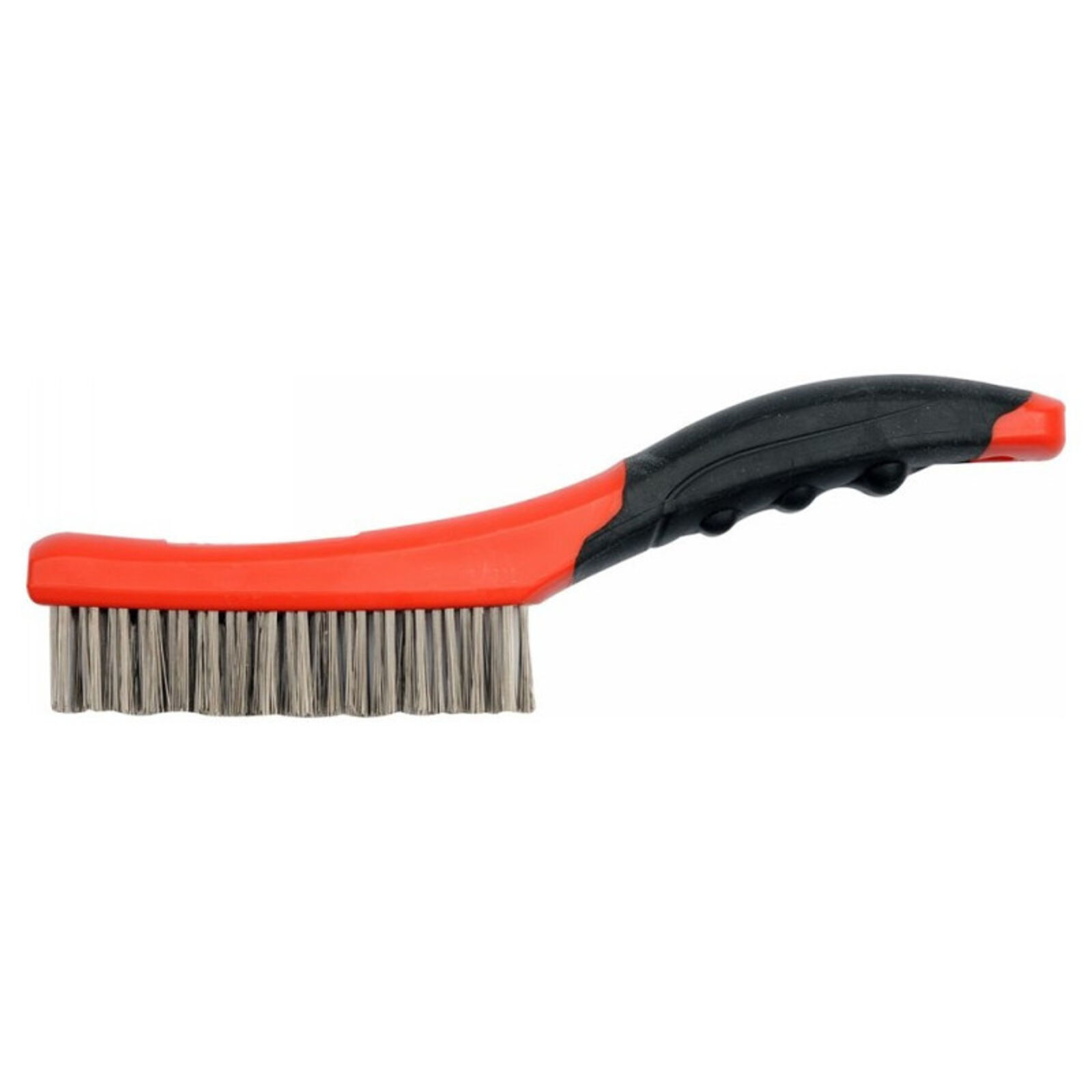 Rozsdamentes acél rugós drótból készült, mely állandóan beágyazódik a műanyag testbe. A kefe profilja növeli a tisztítási hatékonyságot.Felhasználási cél:Kefe rozsdamentes és saválló anyagok, kemény fémfelületek tisztítására rozsdától, festéktől, vakolatmaradványoktól és más szennyeződésektől. Cél. Használati figyelmeztetések: Figyelem! Mindig használjon személyes védőfelszerelést a munka során.