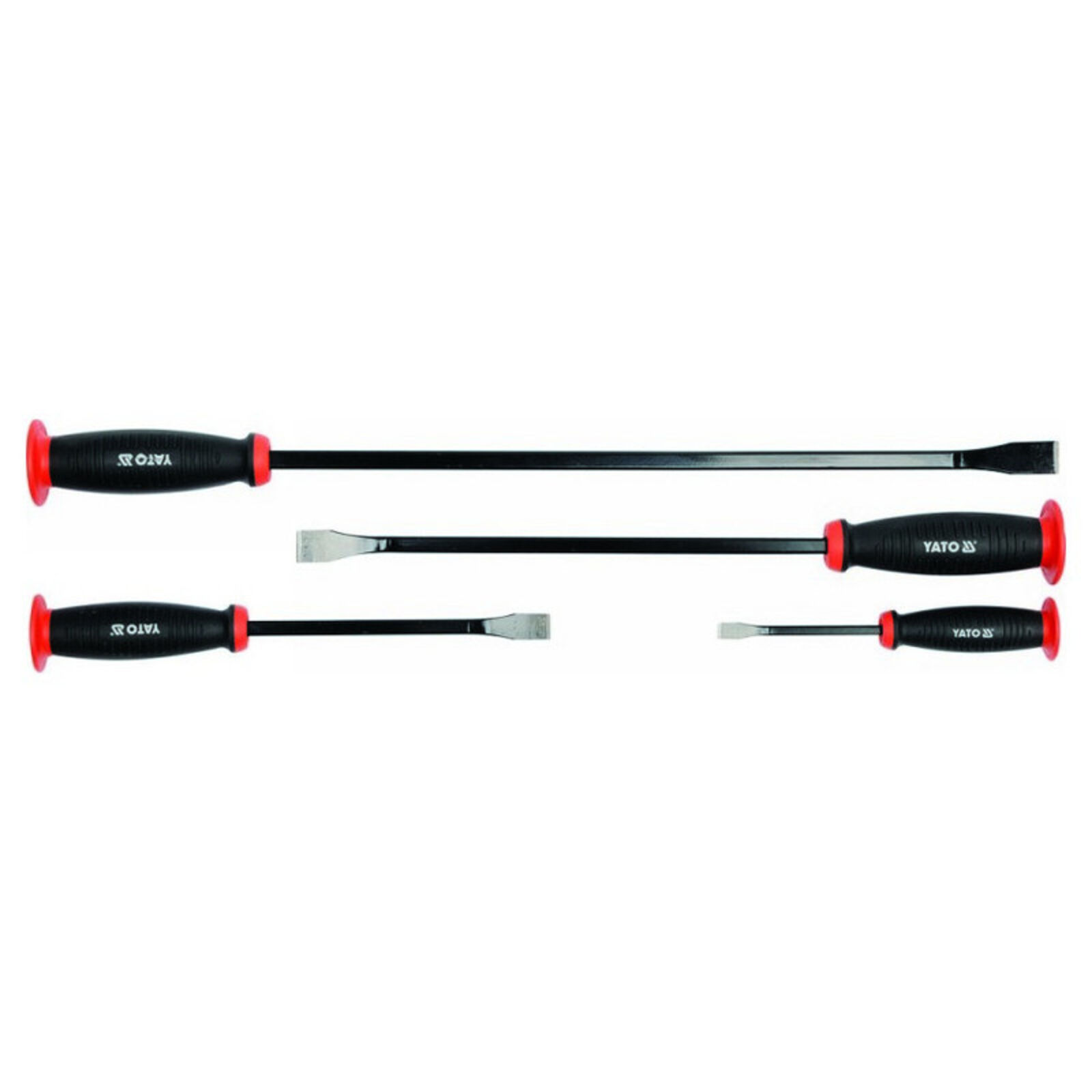 Négy darabos koronák / emelőkészlet / vákuumkezelt szénacélból. Körülbelül 38 HRC-re edzett fogantyúk kényelmes műanyag borítással védve. A méret differenciálása lehetővé teszi az optimális eszköz kiválasztását az elvégzendő munka számára. Műhelyekben, weboldalakon, garázsokban alkalmazható. Használati figyelmeztetések: A kéziszerszámok használata veszélyes lehet! Mindig használjon személyes védőfelszerelést munka közben. Csak megfelelő és sérülésmentes eszközöket használjon. Válassza ki az eszköz típusát és méretét az előre meghatározott felhasználás szerint. Ne terhelje túl az eszközöket. Tartsa távol a szerszámokat a gyermekektől. Gondosan használja az eszközöket.