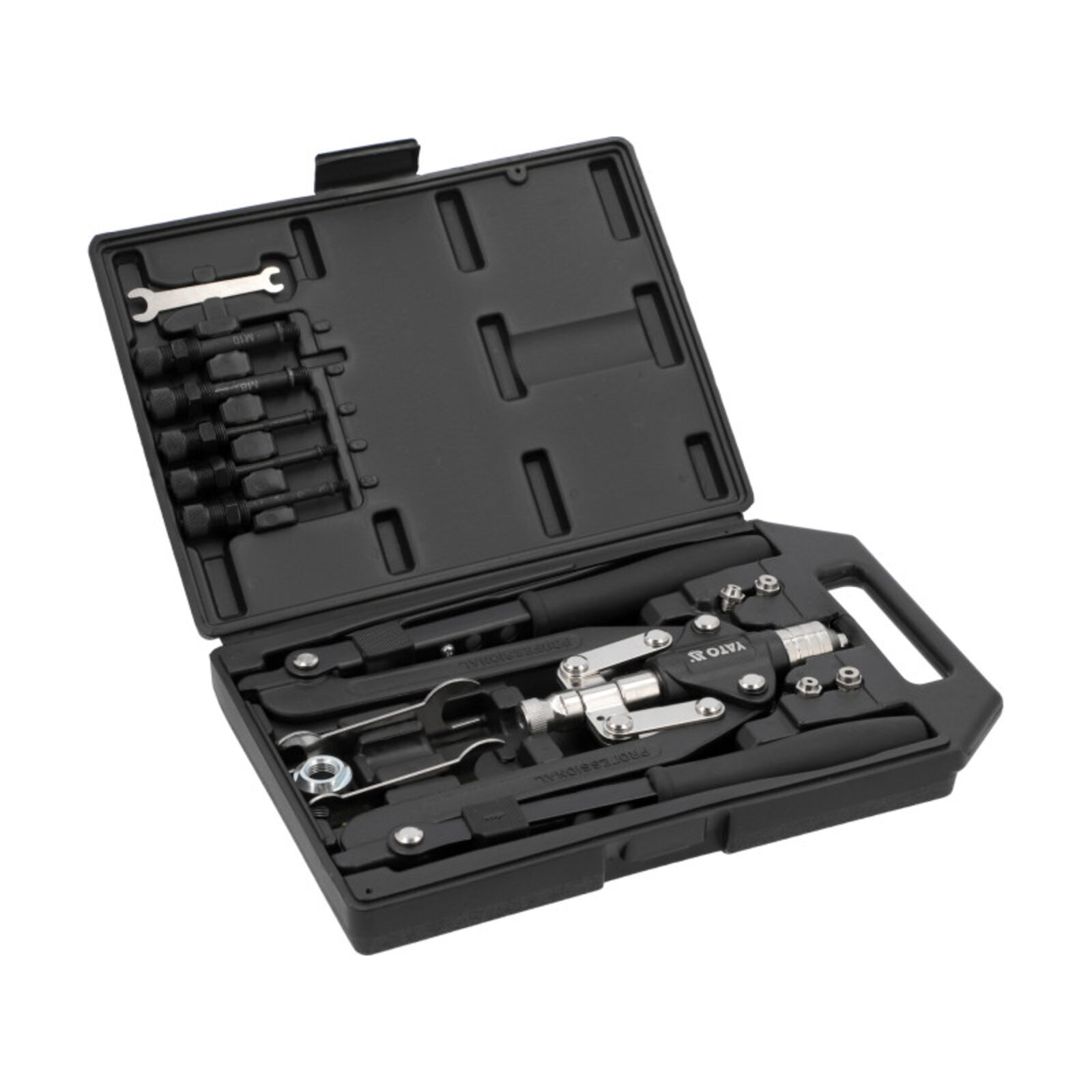 Professzionális nehézgép szegecselőgép szegecs és szegecs anya beépítéshez. tervezve: szegecsek: 3.2, 4, 4.8, 6, 6.4 mm szegecs anyák: M4, M5, M6, M8, M10 3 CrMo acélból készült állkapocs felület foszfatálási módszerrel készült corpus anyaga: széntartalmú acél, tartós és ellenálló a mechanikai sérüléseknek fogantyú anyaga: PE hossz: 300-520 mm szegecs és szegecs anya fej tartozik hozzá Felhasználási figyelmeztetések: Figyelem! Mindig használjon személyes védőfelszerelést munka közben.