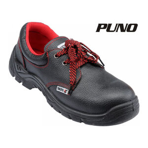A PUNO SB munkavédelmi bakancsok alapvető kialakításúak, ütésálló acél orrmerevítővel és a talprész speciálisan átfedett kialakításával, amely megóvja a cipő orrát a sérülésektől. ALAPADATOK: felső anyag: szemcsés bőr talp anyaga: PU/PU LÁBVÉDELEM: kategória: SB csúszásgátlás: SRC ütésálló acél orrmerevítő, amely 200 J energia és 15 kN nyomóerő ellen véd barázdált, olajálló és csúszásmentes talp TOVÁBBI INFORMÁCIÓK: a talp átfedése a lábfej felett megakadályozza a cipőorr kopását megfelel az EN 20345 szabvány követelményeinek