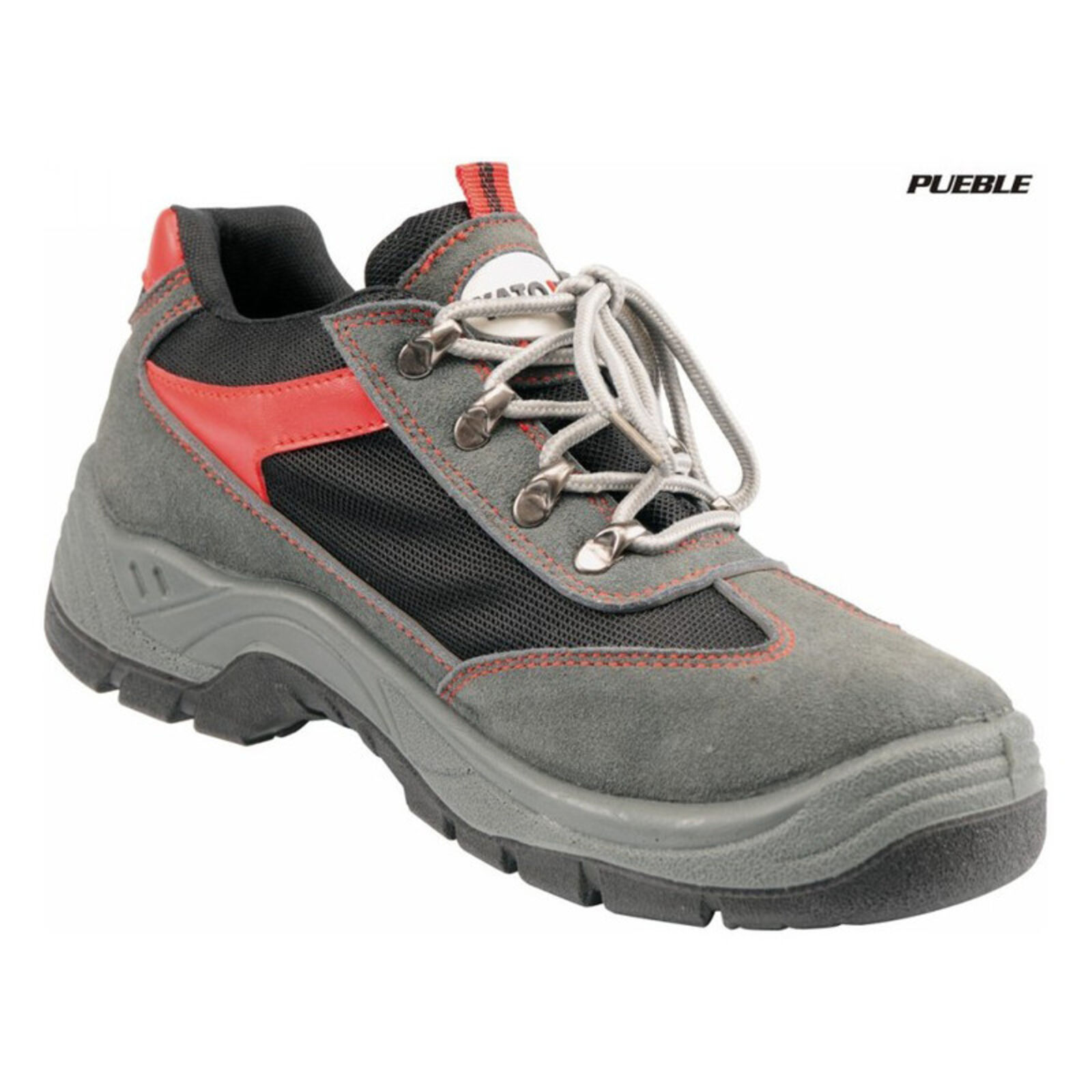 A PUEBLE S3 sorozat félcipői ütésálló acél orrmerevítővel, átszúrásvédő betéttel és a talp különleges kialakításával rendelkeznek, amely a cipő felső részének tetejét átfedve védi ezt a kritikus pontot a sérülésektől. Kompatkt felépítésüknek köszönhetően jelentősen csökkentik a víz bejutását és felszívódását, míg a két anyagból készült felsőrész – velúr bőrből és speciális, többrétegű hálóból – kiváló légáteresztést biztosít. ALAPADATOK: felső anyaga: velúr bőr + többrétegű háló talp anyaga: PU/PU LÁBVÉDELEM: kategória: S3 csúszásállóság: SRC ütésálló acél orrmerevítő, amely akár 200 J energiájú ütéseknek, illetve 15 kN összenyomó erőnek is ellenáll acél átszúrásvédő talpbetét, amely akár 1100 N nyomású éles tárgyak okozta átszúrástól védi a lábat a sarok alatti ütéscsillapítás csökkenti a láb fáradását a hosszabb gyaloglás során kompakt kialakítás csökkenti a víz áthatolását és felszívódását barázdált, olajálló, antisztatikus és csúszásgátló talp EXTRA TUDNIVALÓK: a talp a talpbetétet átfedve megakadályozza a cipőorr kopását a felsőrész oldalán található speciális többrétegű háló jelentősen javítja a levegő áramlását megfelel az EN 20345 szabvány követelményeinek