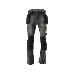 Szerszámoló nadrág elasztánnal, dörzsölt és nyújtható farmerből készült. Akár tizenhét zseb, köztük egy tépőzárral, kettő cipzárral és két levehető szerelőzseb. A nagy számú alapzseb és szerelőzseb az erős anyagban segít rendszerezni az asztalos, tetőfedő vagy vízvezetékszerelő munkáját. A fő anyag a pamut, poliészter, viszkóz és elasztán keveréke. A pamut, mint természetes anyag, nagyon jól tolerálható a test által és kellemes a bőrre. A poliészter hozzáadása növeli a szakadási ellenállást, a viszkóz hozzájárul a simasághoz, az elasztán pedig a nyújthatósághoz. ALAPADATOK anyag: 71% pamut, 25,5% poliészter, 2% viszkóz, 1,5% elasztán/spandex grammsúly: 325 g/m2 A MUNKA SZERVEZÉSE a deréktól lefelé az elől, két levehető többzsebes zseb összesen négy zsebbel és hat eszközhurkával a szerelőzsebek alatt két nagy fő zseb a bal lábszáron egy nagy cipzáras zseb, négy vékony zseb, és négy eszközhurok a jobb lábszáron egy nagy cipzáras zseb, két kisebb zseb, amelyből az egyik tépőzáras, és egy vékony zseb például egy fa mérőszalag számára két nagy zseb a hátul deréktól lefelé a térdnél zsebek, kopásálló anyagból készült térdvédők számára, pl. 74595 TOVÁBBI INFORMÁCIÓK kettős varratok és többszörös varrás a könnyen szakadó területeken cipzár és sárgaréz gomb hét övgumi és két lyuk egy karabinerhez kulcsokkal vagy eszközök rögzítéséhez pl. YT-74009 A nyújtható farmer munkanadrág megfelel az (EU) 2016/425 rendelet I. kategóriájú munkaruházat előírásainak.