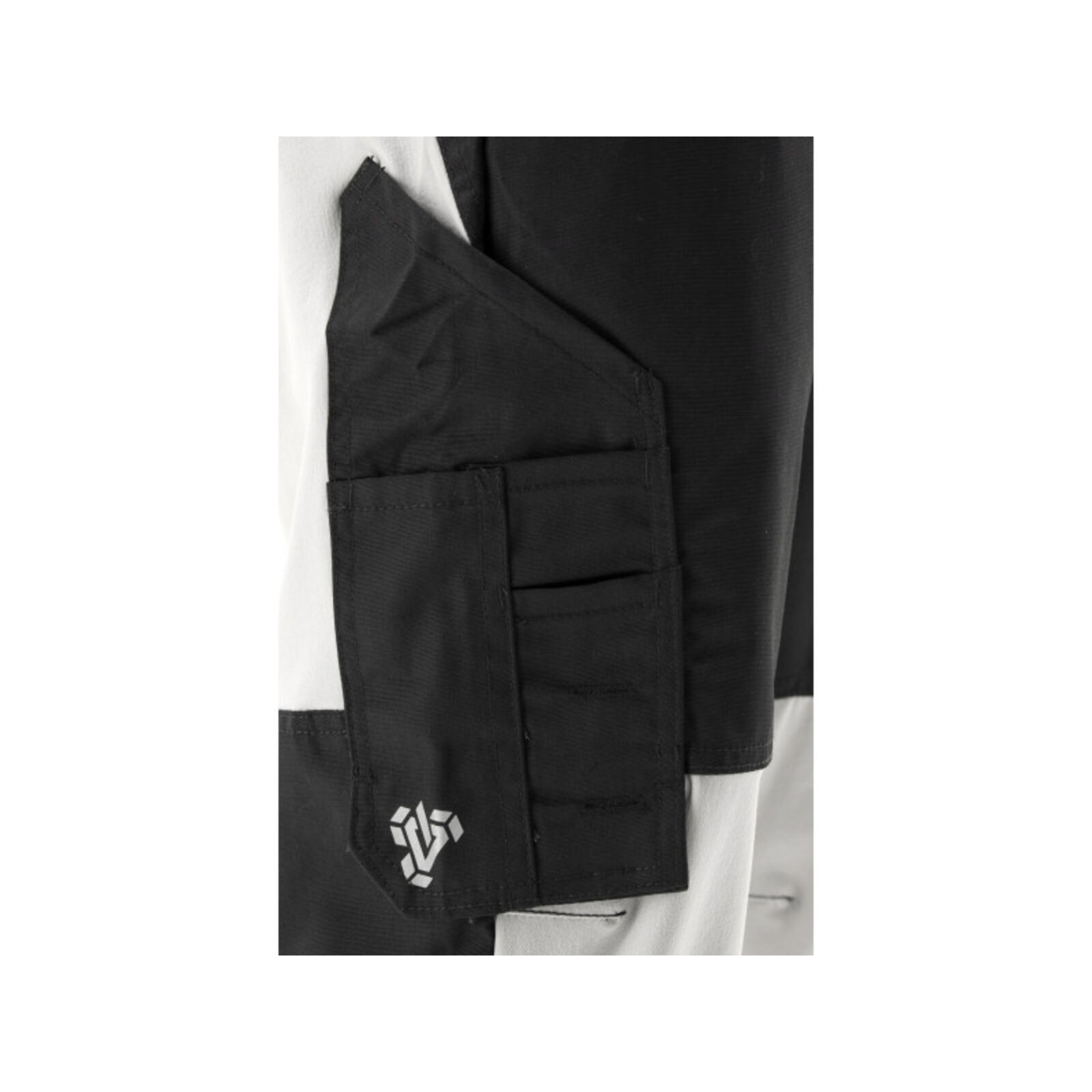 Munkanadrág a SERWAL sorozatból, 4way stretch anyagból készült betétekkel. Tizenegy zseb, köztük multifunkciós zseb rejtett cipzárral, ideális pénztárcának vagy telefonnak. Lehetséges a nadrág rövidítése körülbelül 4 cm-rel bevarrt patentgombokkal. Sokféle varrás a szakadásra leginkább hajlamos területeken. A fő anyag a megfelelő arányban kevert pamut/poliészter. Ez a megoldás mindkét anyag erősségeit használja ki, beleértve a megnövelt szakítószilárdságot és a jó légáteresztést. A kontrasztos színű betétek nylonból készülnek elasztánnal. Tartós és nyújtható, jelentősen javítja a kényelmet, különösen nem szabványos pozíciókban. Alapinformációk: fő anyag: 65% poliészter, 35% pamut Egység súlya: 260 g/m2 betét anyaga: 94% poliamid, 6% elasztán Egység súlya: 270 g/m2 Munkaszervezés: két tágas zseb az előlapon a bal lábon többzsebes, beleértve egy rejtett cipzáras zsebet, egyet tépőzárral rögzített fedéllel és egy keskeny zsebet, például tollnak a jobb lábon négy vékony zseb, például fa mérőszalagnak vagy kéziszerszámnak a hátoldalon a deréknál két nagy cipzáras zseb Egyéb információk: kettős varrások és többszörösen varrt területek a szakadásra hajlamos helyeken zipzár és réz gomb belelt öv hét övbújtató patentgombok a lábszáron, amelyek lehetővé teszik a nadrág körülbelül 4 cm-rel történő rövidítését A SERWAL munkanadrág-sorozat megfelel az EU 2016/425 rendelet I. kategóriás munkaruházatra vonatkozó követelményeinek.